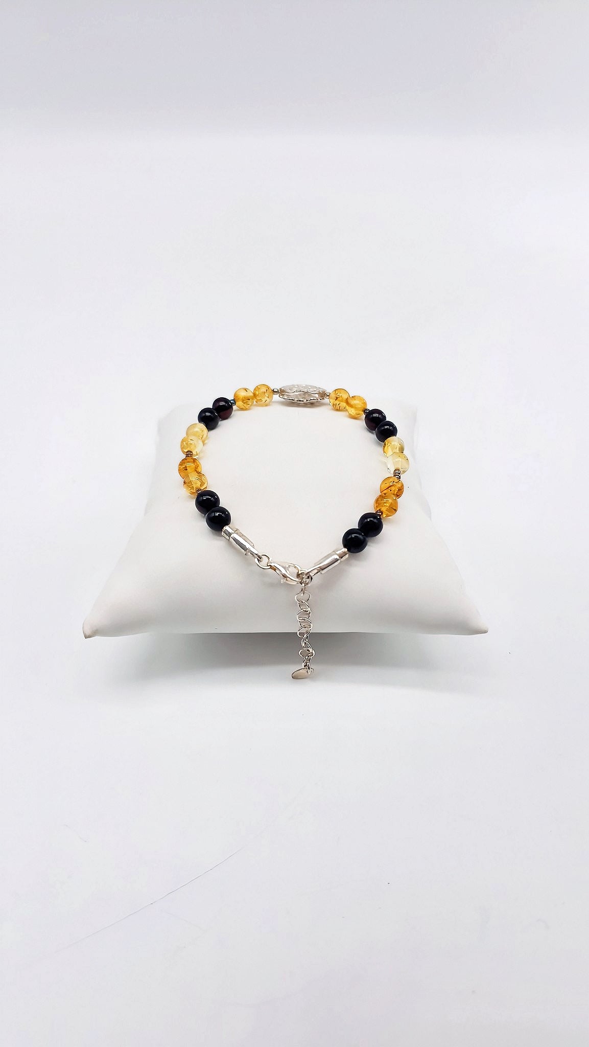 Stilvolles Damenarmband aus Bernstein und Silber 18 cm