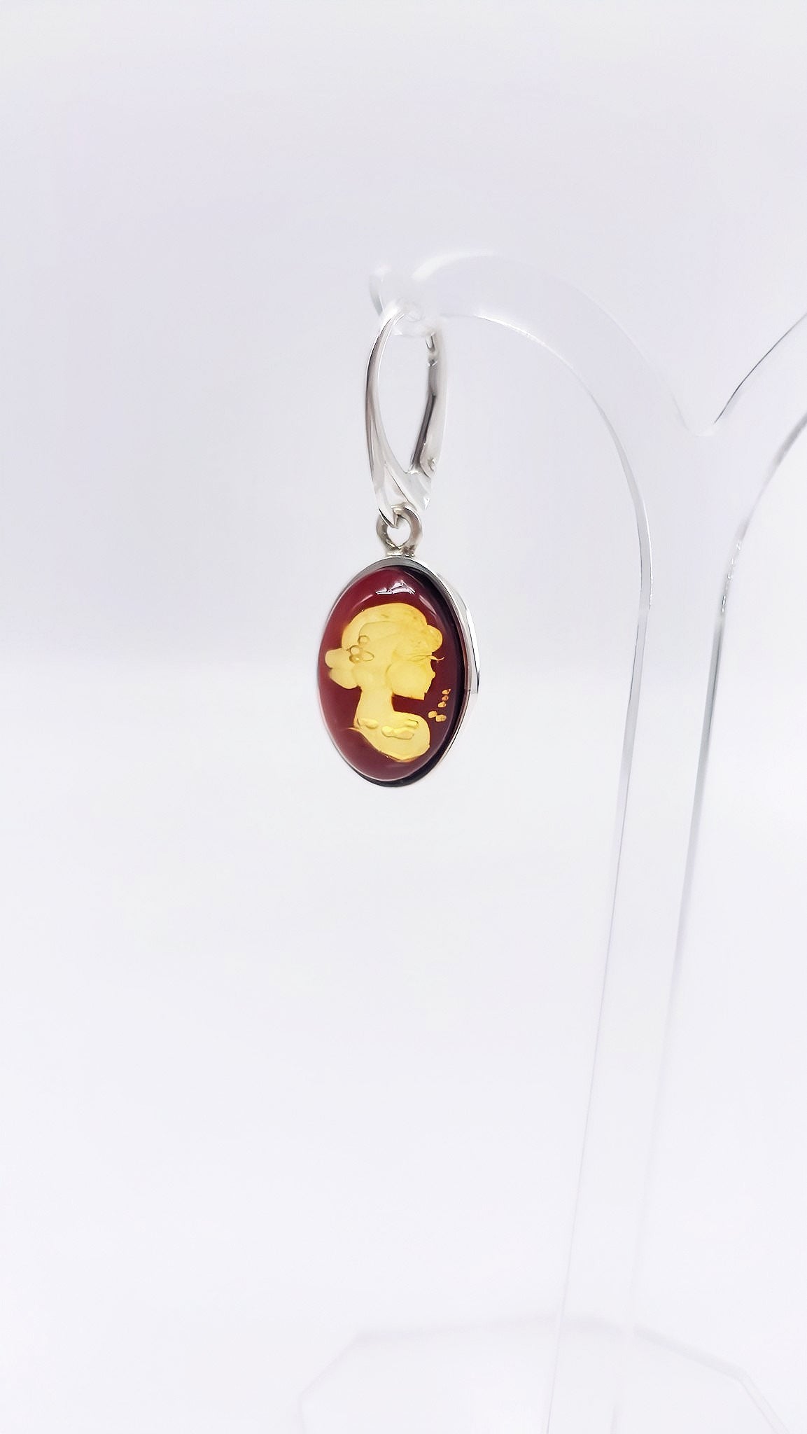Diese handgefertigten Bernstein Ohrringe vereinen klassische Eleganz mit kunstvoller Verarbeitung. Der warme, goldgelbe Bernsteinstein mit feiner Gravur wird in eine edle 925er Sterlingsilber-Fassung eingefasst und verleiht den Ohrringen eine zeitlose Ausstrahlung. Mit einer Länge von 4 cm, einer Breite von 1,4 cm und einer Höhe von 1 cm sind diese Ohrringe ein stilvolles Accessoire für jeden Anlass. Perfekt für Frauen, die hochwertigen Schmuck mit einem Hauch von Vintage lieben – ideal als Geschenk für Geburtstage, Jubiläen oder besondere Anlässe.
