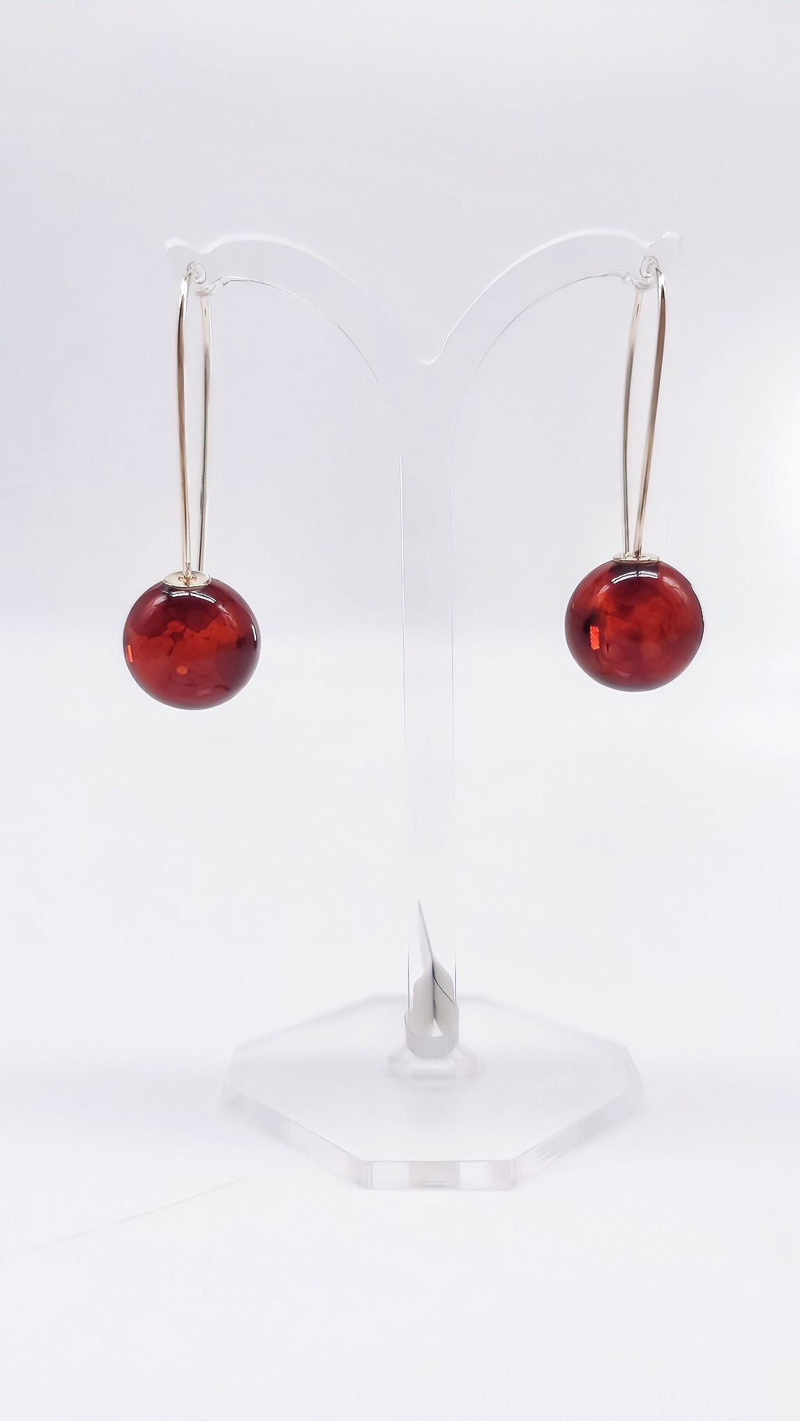 Diese handgefertigten Bernstein Ohrhänger vereinen minimalistisches Design mit edler Handwerkskunst. Die perfekt geformten Bernsteinkugeln in tiefem Rot sind in eine stilvolle 925er Sterlingsilber-Fassung eingearbeitet und sorgen für eine elegante Ausstrahlung. Mit einer Länge von 5 cm, einer Breite von 1,4 cm und einer Höhe von 1,4 cm sind diese Ohrringe leicht und angenehm zu tragen. Perfekt für Frauen, die hochwertigen, zeitlosen Schmuck schätzen – ein edles Accessoire für den Alltag oder besondere Anlässe wie Geburtstage, Jubiläen und elegante Abendveranstaltungen.