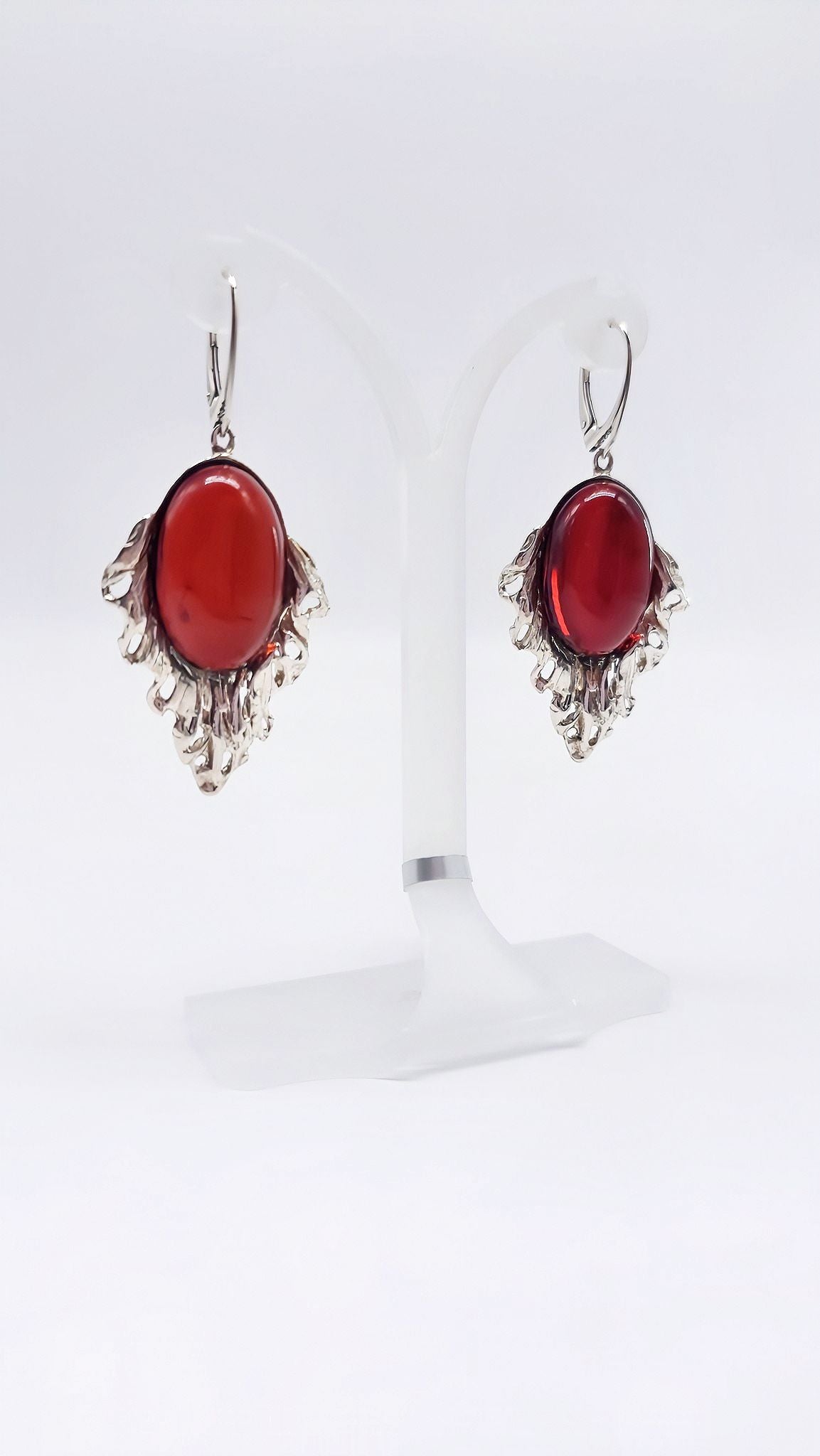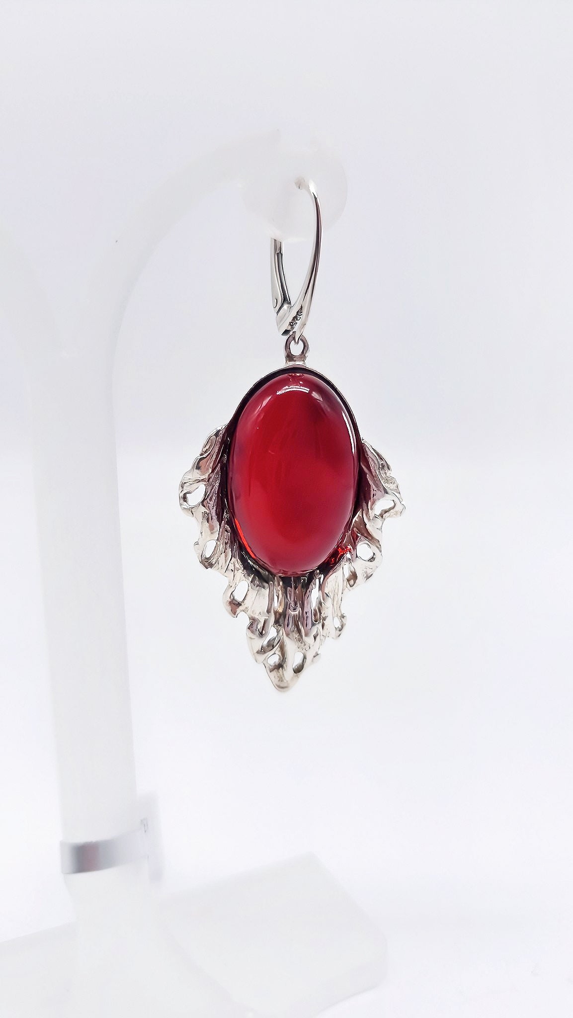 Silberohrringe mit tiefrotem Bernstein – perfektes Geschenk