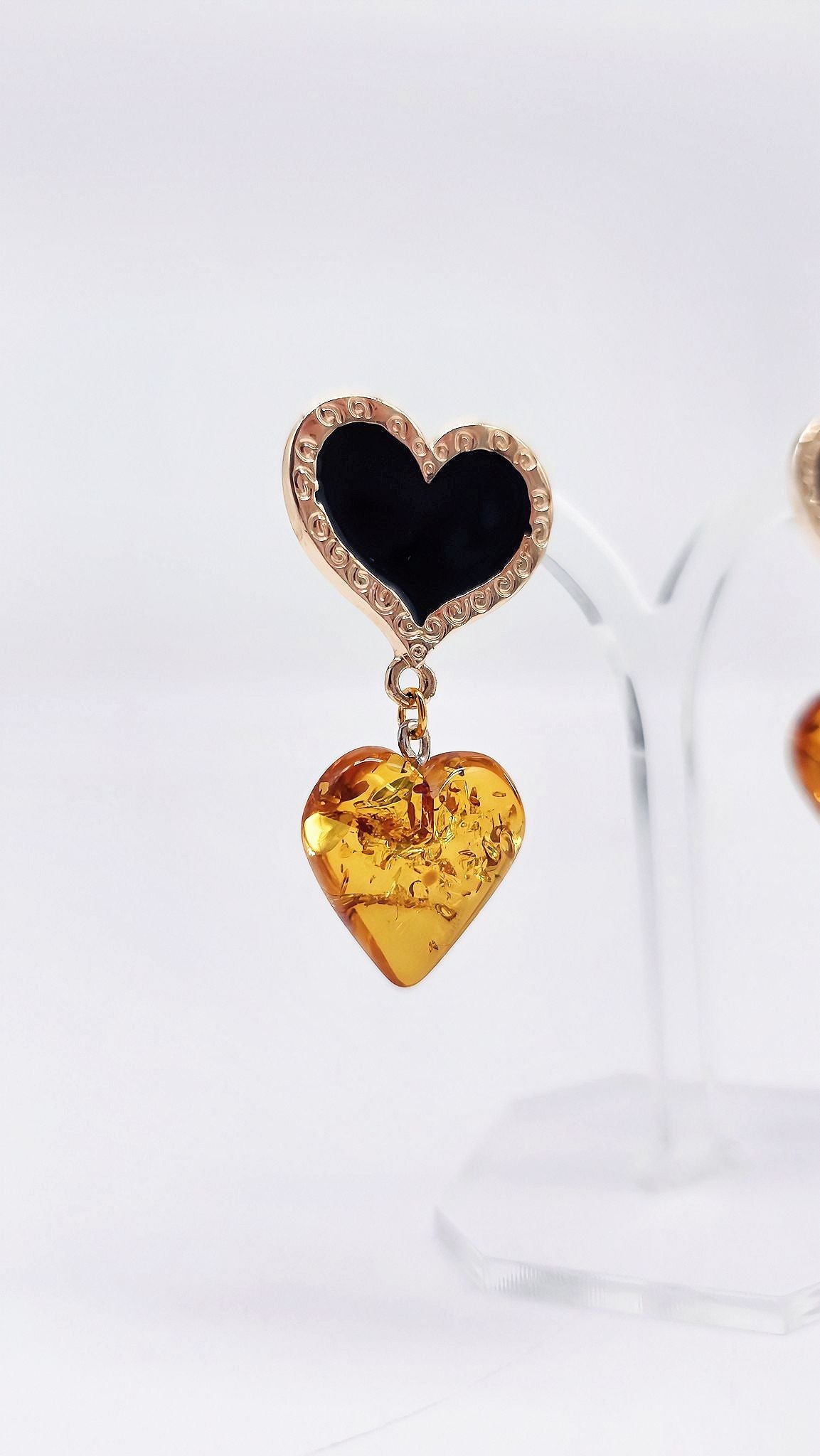 Diese einzigartigen Herz-Ohrringe aus vergoldetem 925er Sterlingsilber sind ein absoluter Blickfang. Die Kombination aus glänzendem Gold, schwarzer Herzfassung und leuchtend gelbem Bernstein schafft einen modernen, stilvollen Kontrast. Das romantische Design macht sie zum perfekten Geschenk für besondere Anlässe oder als edles Accessoire für den Alltag. Handgefertigt aus hochwertigen Materialien, bieten sie Eleganz und Tragekomfort in einem. Ein wunderschöner Ohrschmuck für Frauen, die stilvolle und bedeutungsvolle Accessoires lieben.
