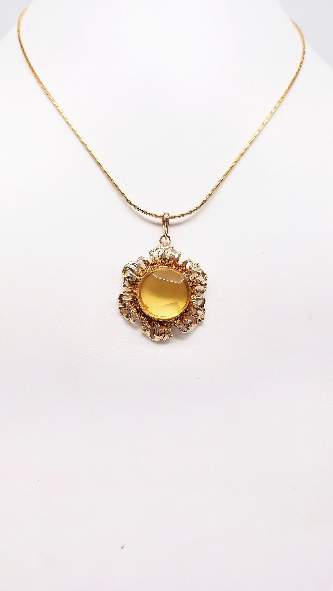 Sonnenblumen-Anhänger mit Bernstein & vergoldetem 925 Silber