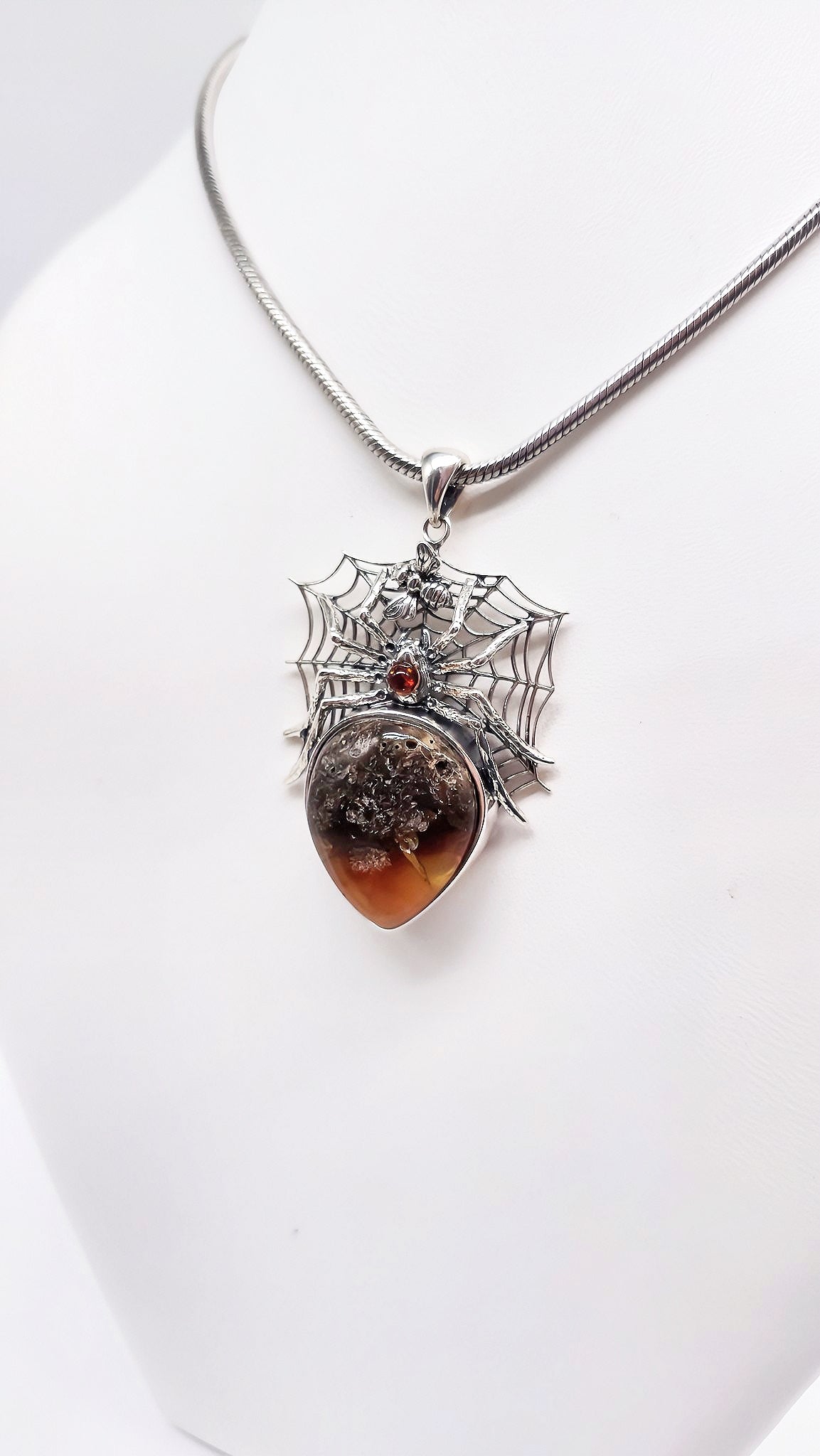 Detailreicher Spinnenanhänger mit echtem Bernstein