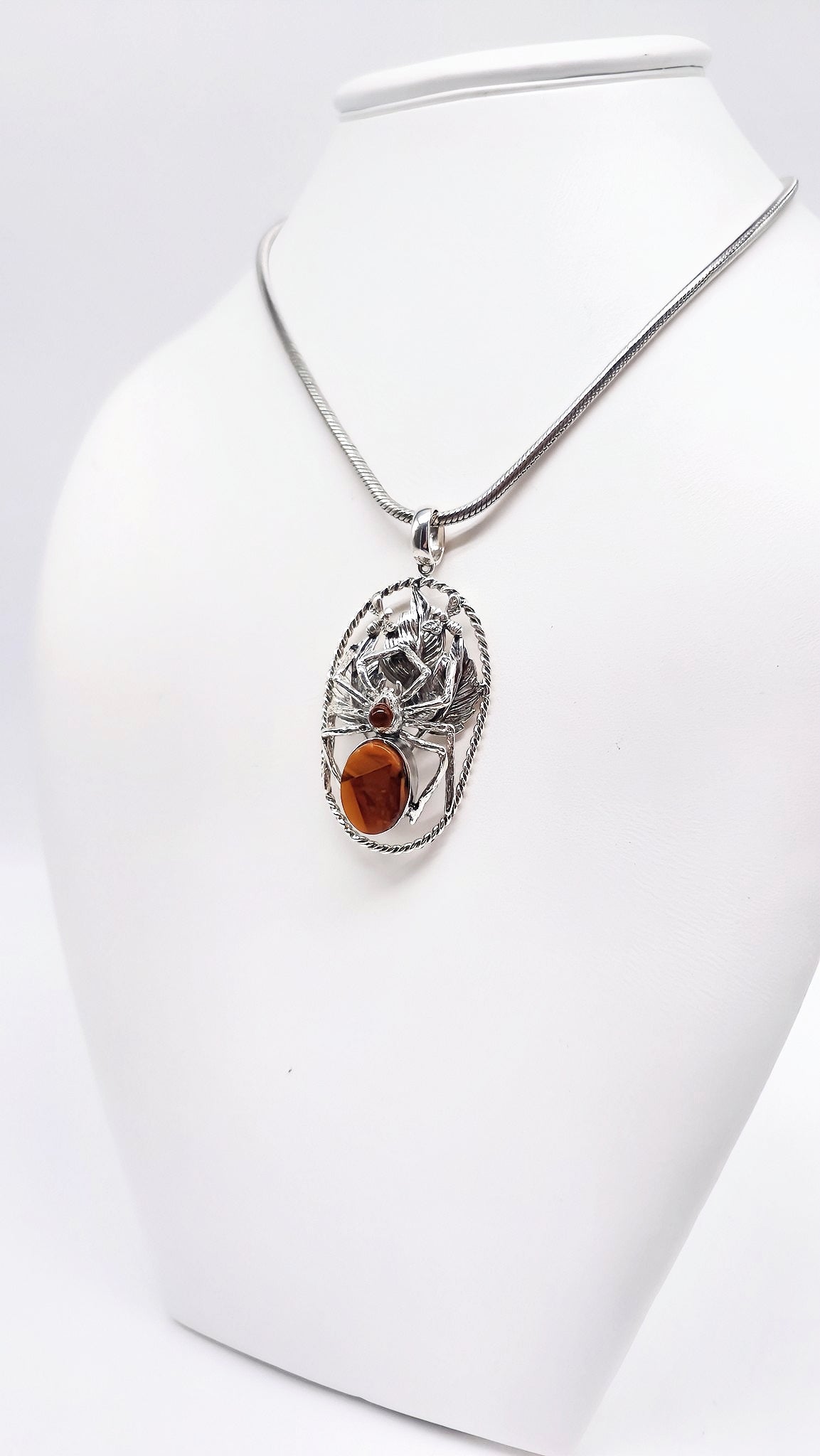 Mystischer Anhänger Spinne – 925er Silber & Bernstein