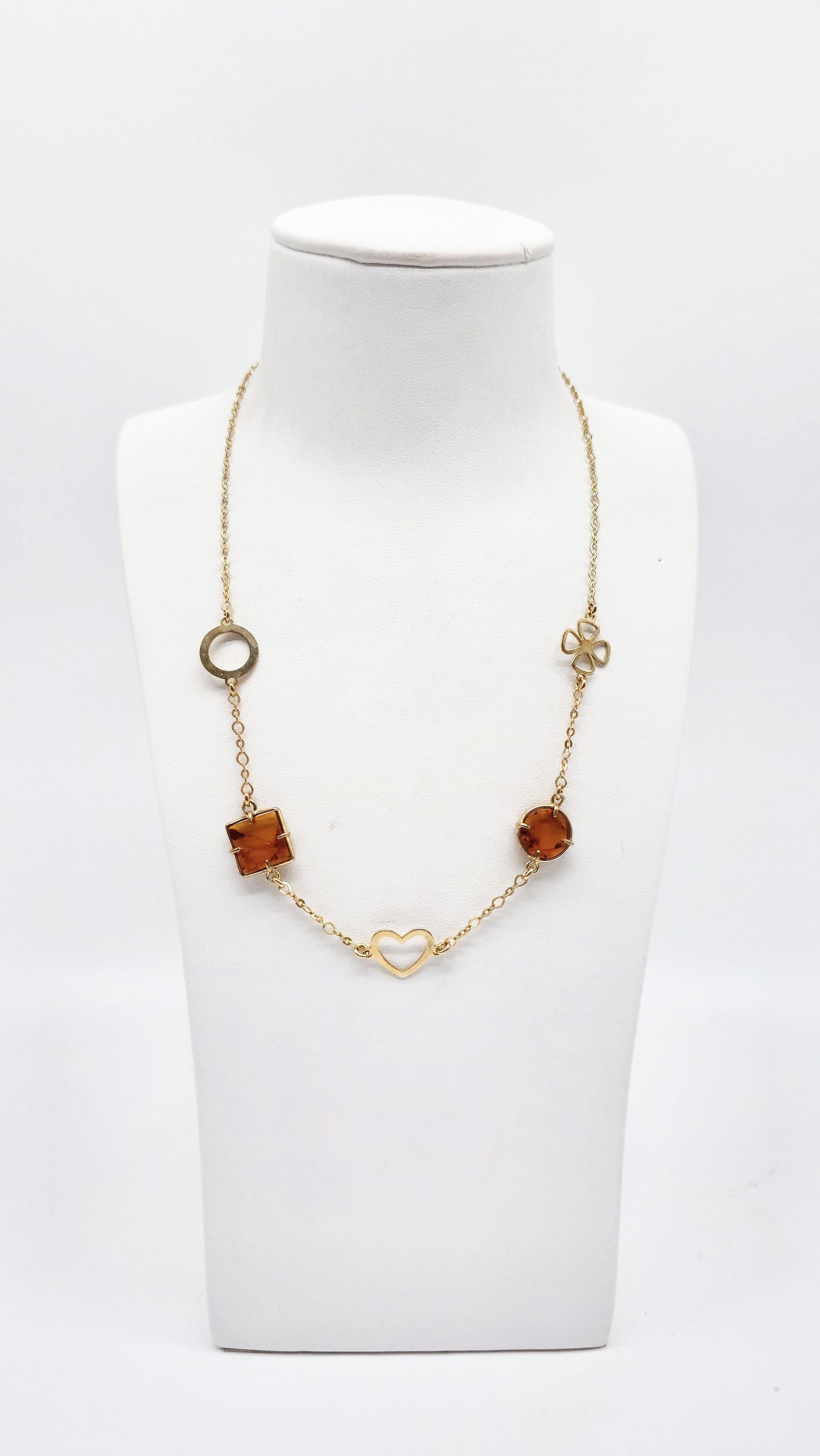 Feine vergoldete Kette mit Herz, Kleeblatt & Bernstein