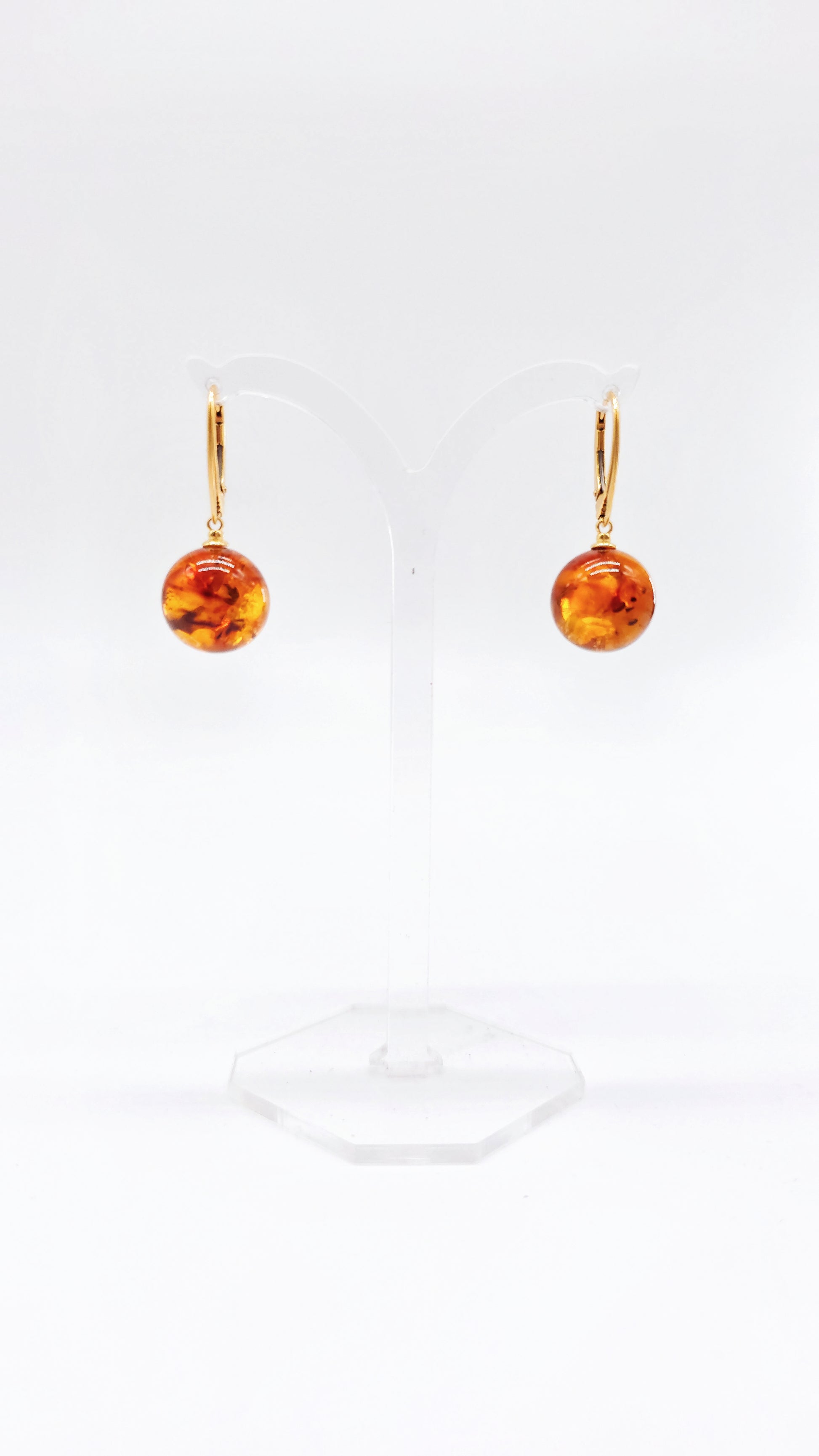 Verleihen Sie Ihrem Look eine besondere Eleganz mit diesen exquisiten Ohrringen aus echtem Naturbernstein. Die runden Bernsteinanhänger in warmem Orangeton schimmern faszinierend und bringen eine natürliche Leichtigkeit in jedes Outfit. Eingefasst in hochwertiges, 24 Karat vergoldetes 925er Sterlingsilber, bieten die Ohrringe eine perfekte Kombination aus klassischem Stil und modernem Glanz.