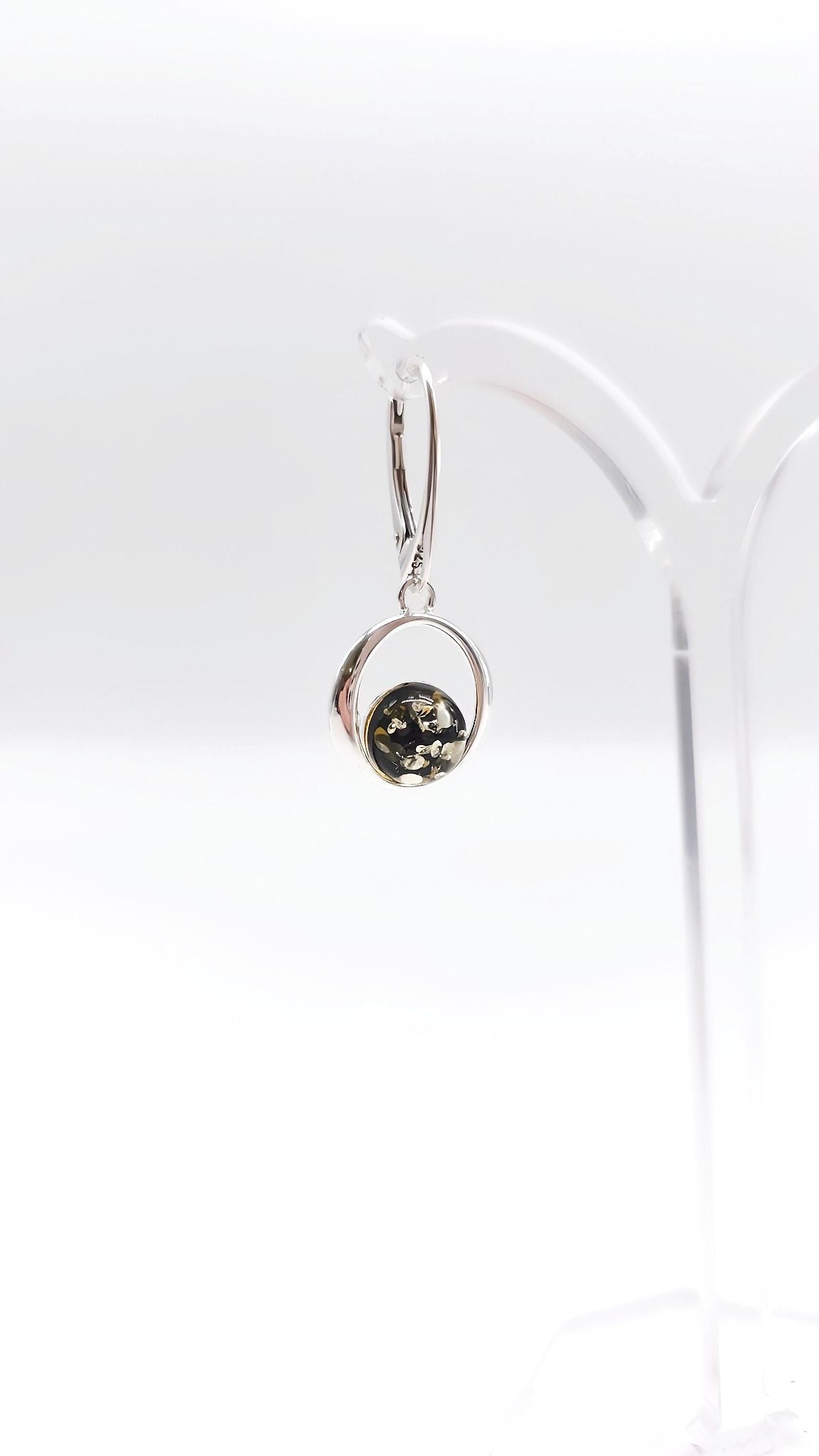 Diese eleganten Silberohrringe mit grünem Naturbernstein vereinen klassische Form mit einem Hauch Extravaganz. Der leuchtende Bernstein ist in ein rundes, modern geschwungenes Design aus 925er Sterling Silber gefasst – ein echter Hingucker für stilbewusste Frauen.