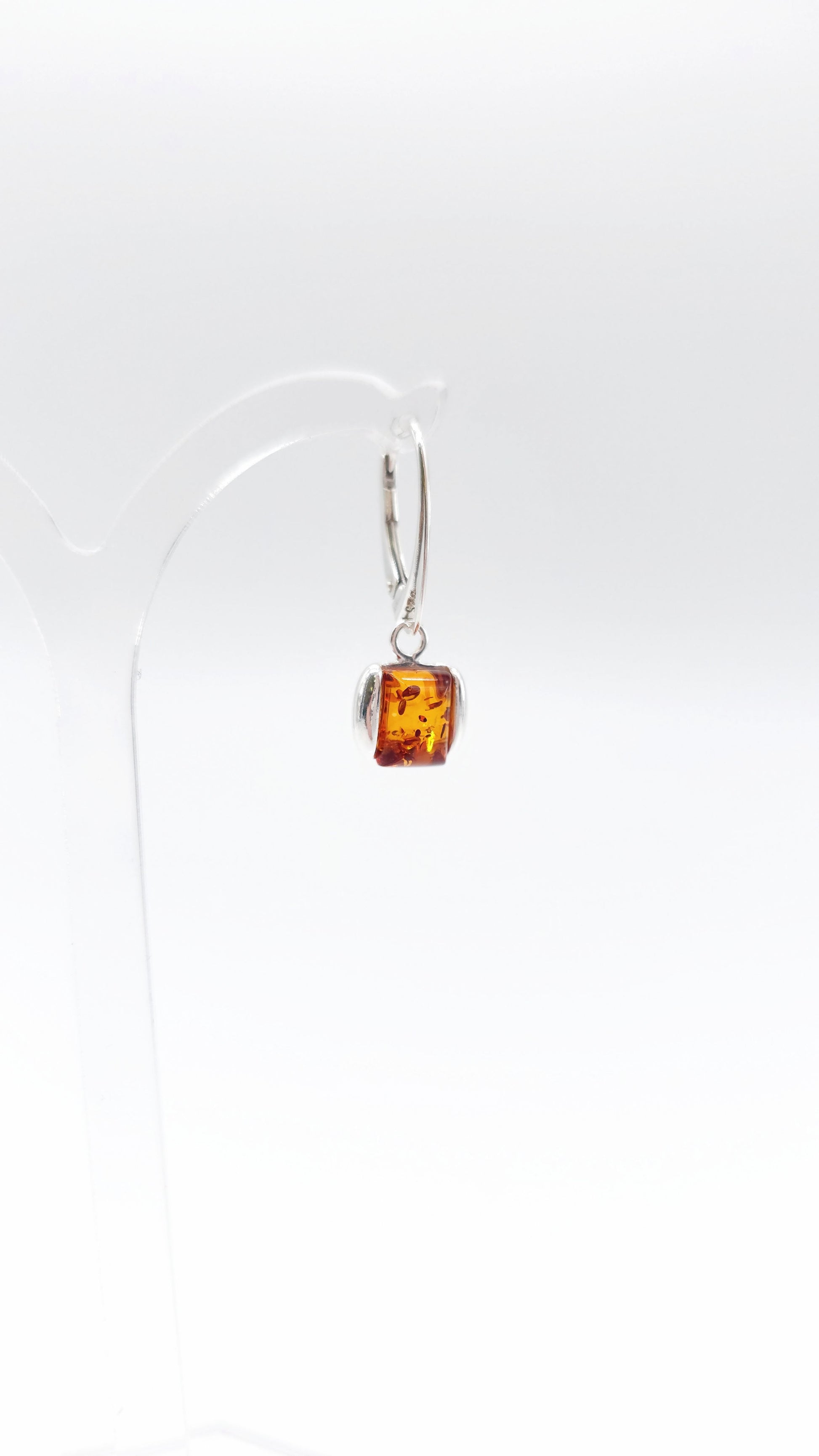 Kompakter Silberohrring mit Bernstein modern und natürlich
