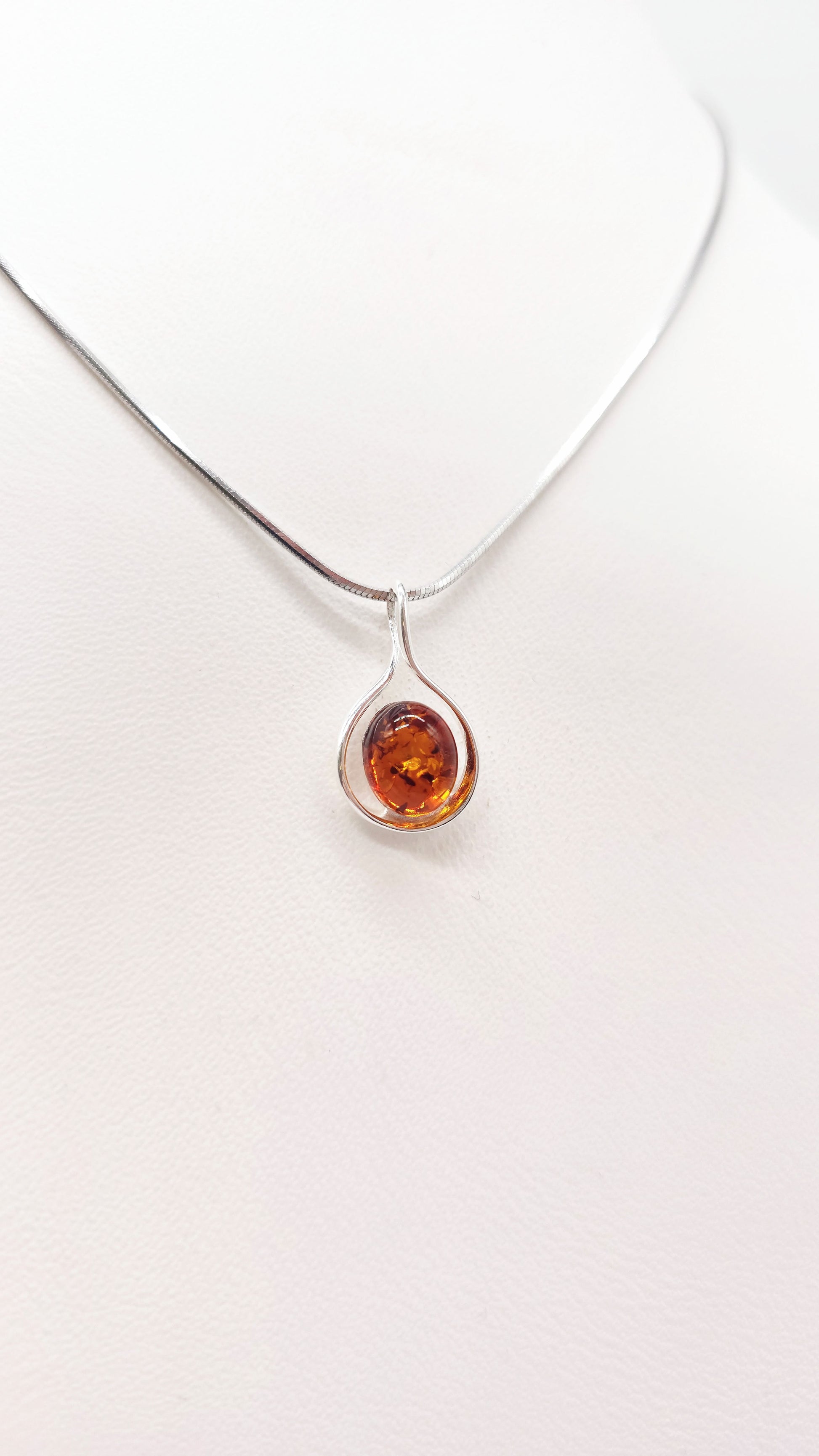 Ein wunderschöner Anhänger mit echtem Bernstein in fein geschwungener 925 Silberfassung – dieses Schmuckstück vereint zeitloses Design mit der Kraft der Natur. Der Anhänger ist handgefertigt und besticht durch seine harmonische Tropfenform, die jeder Trägerin schmeichelt.