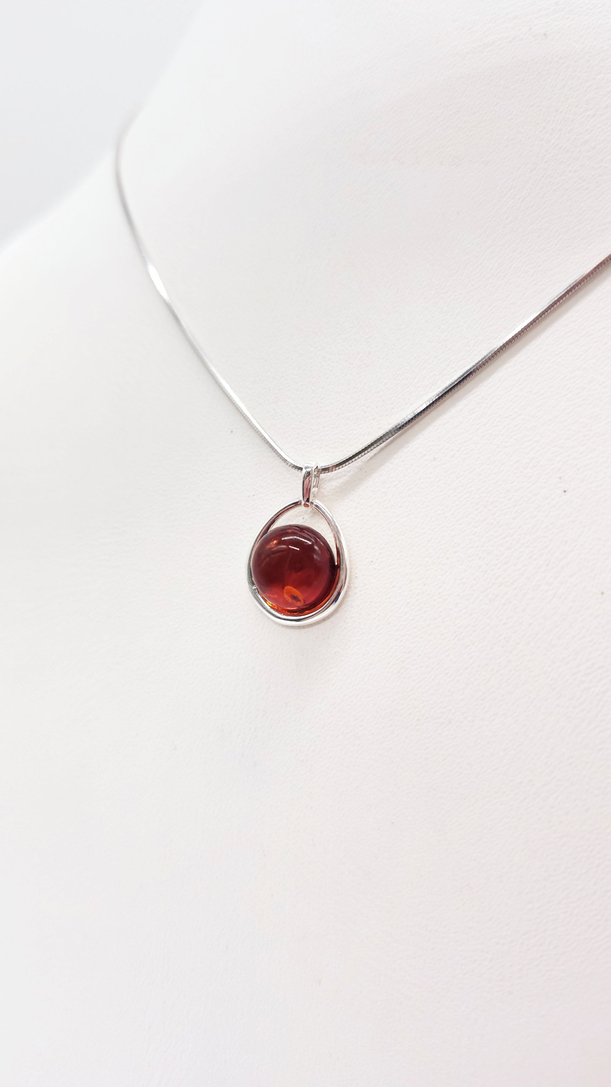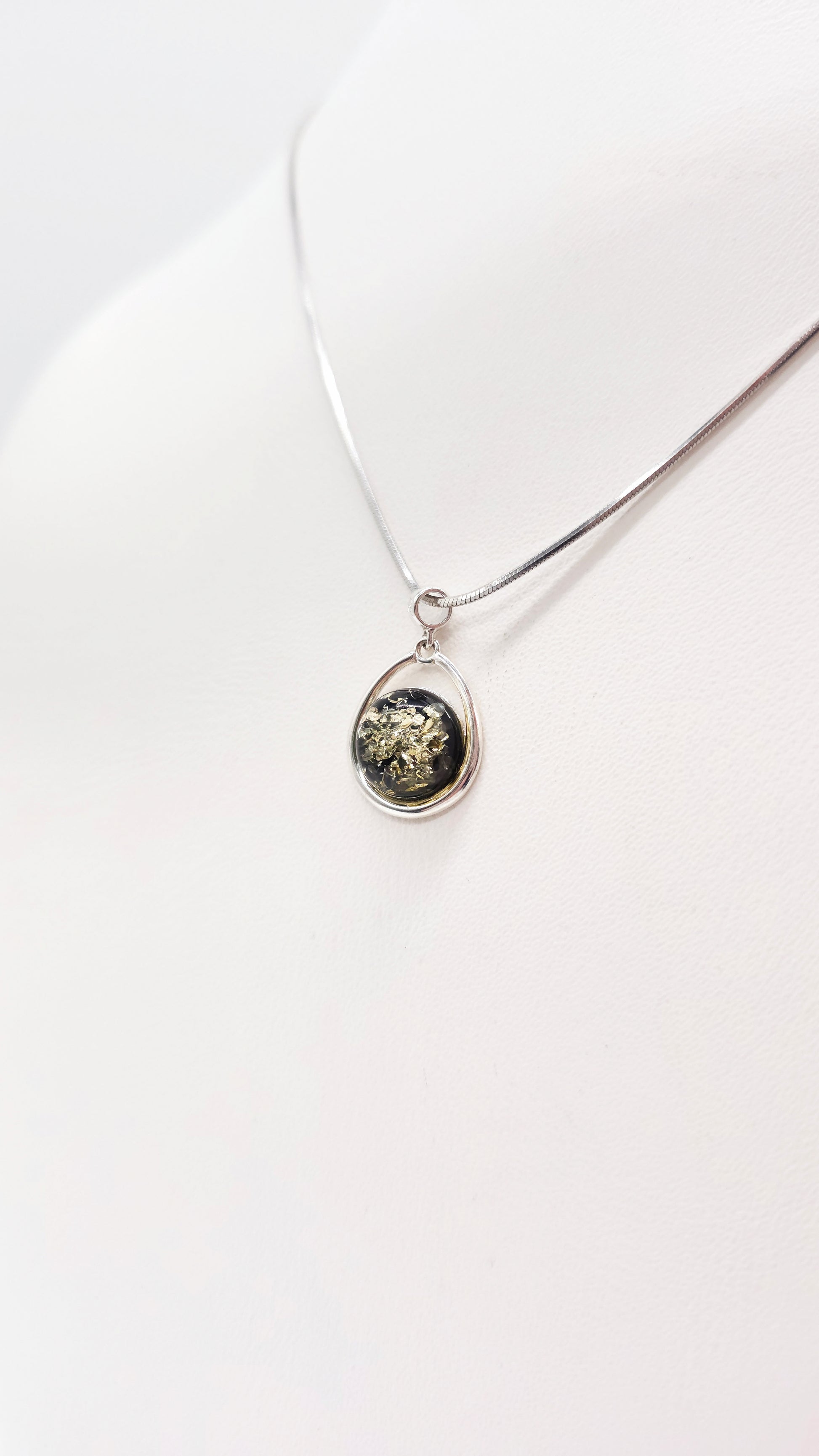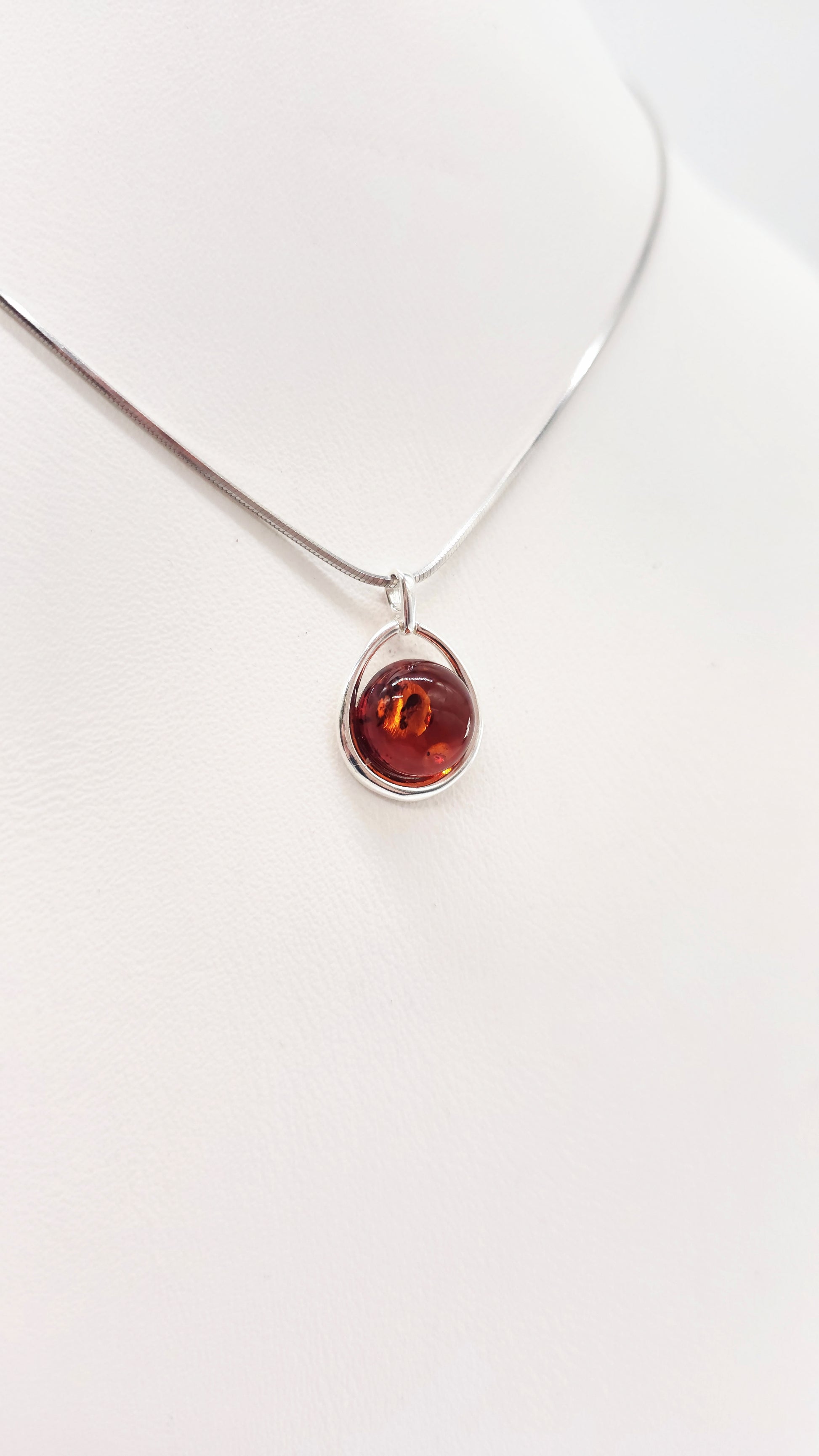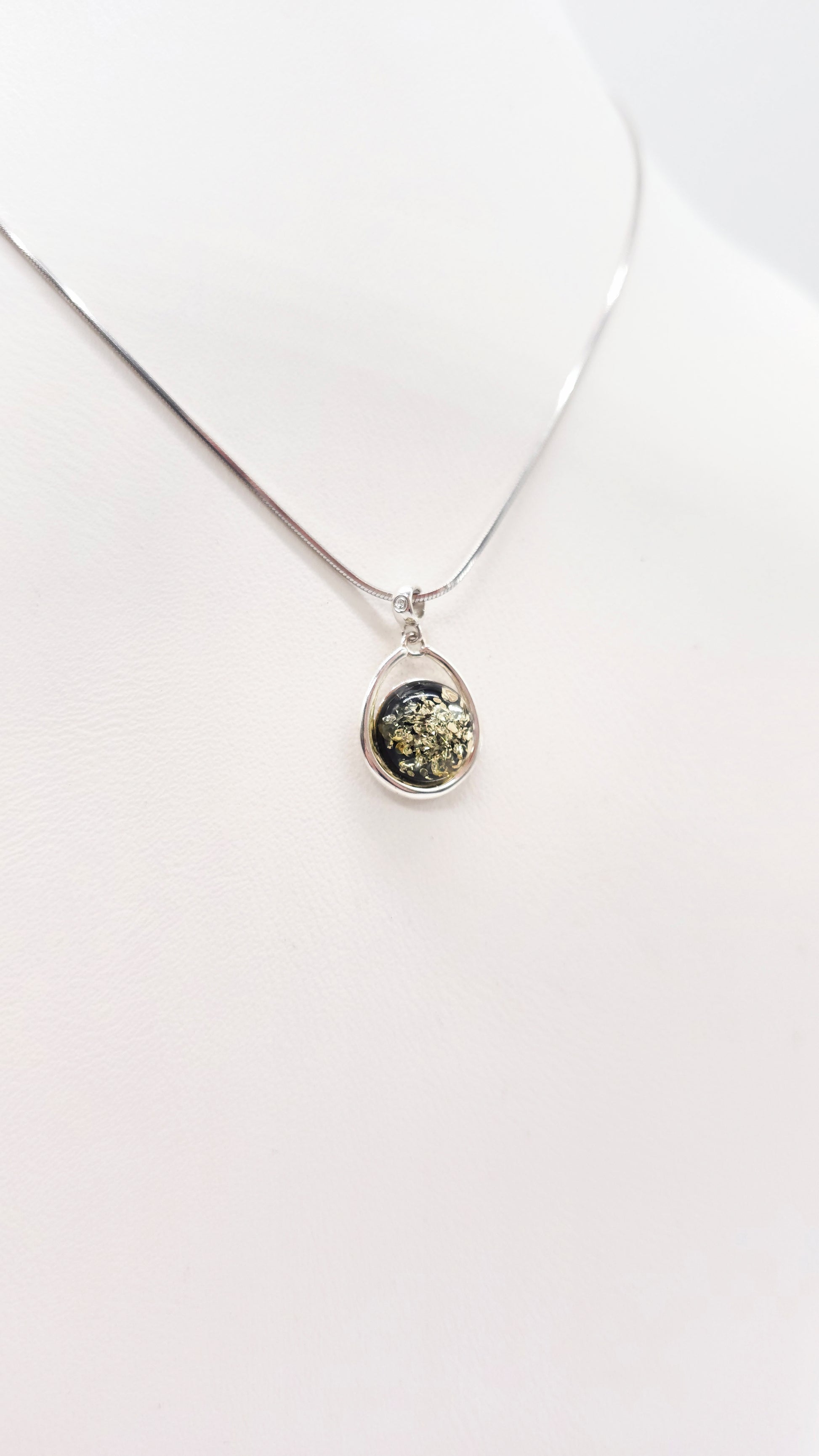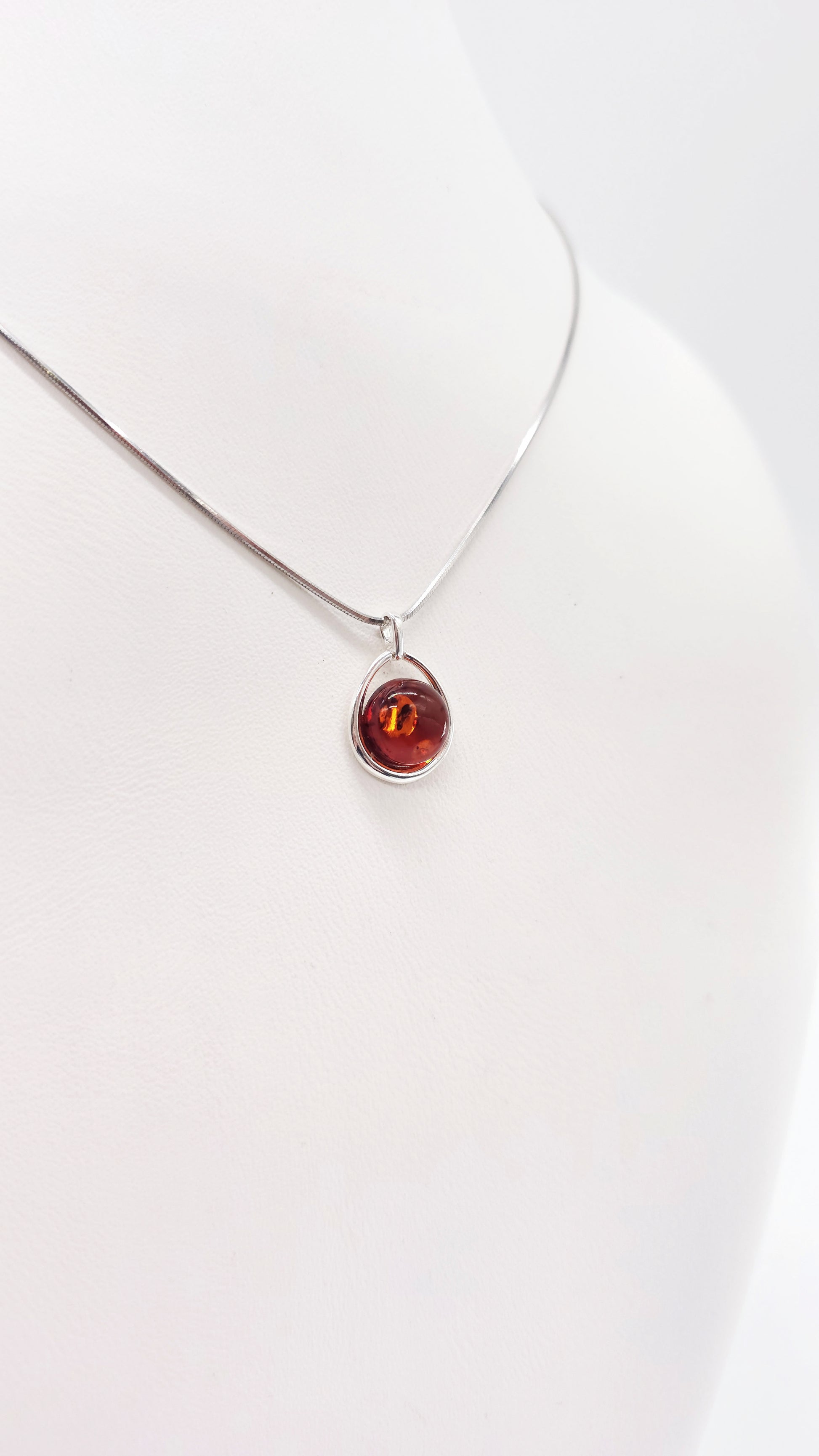 Silberanhänger mit echtem Bernstein – ovaler Tropfen