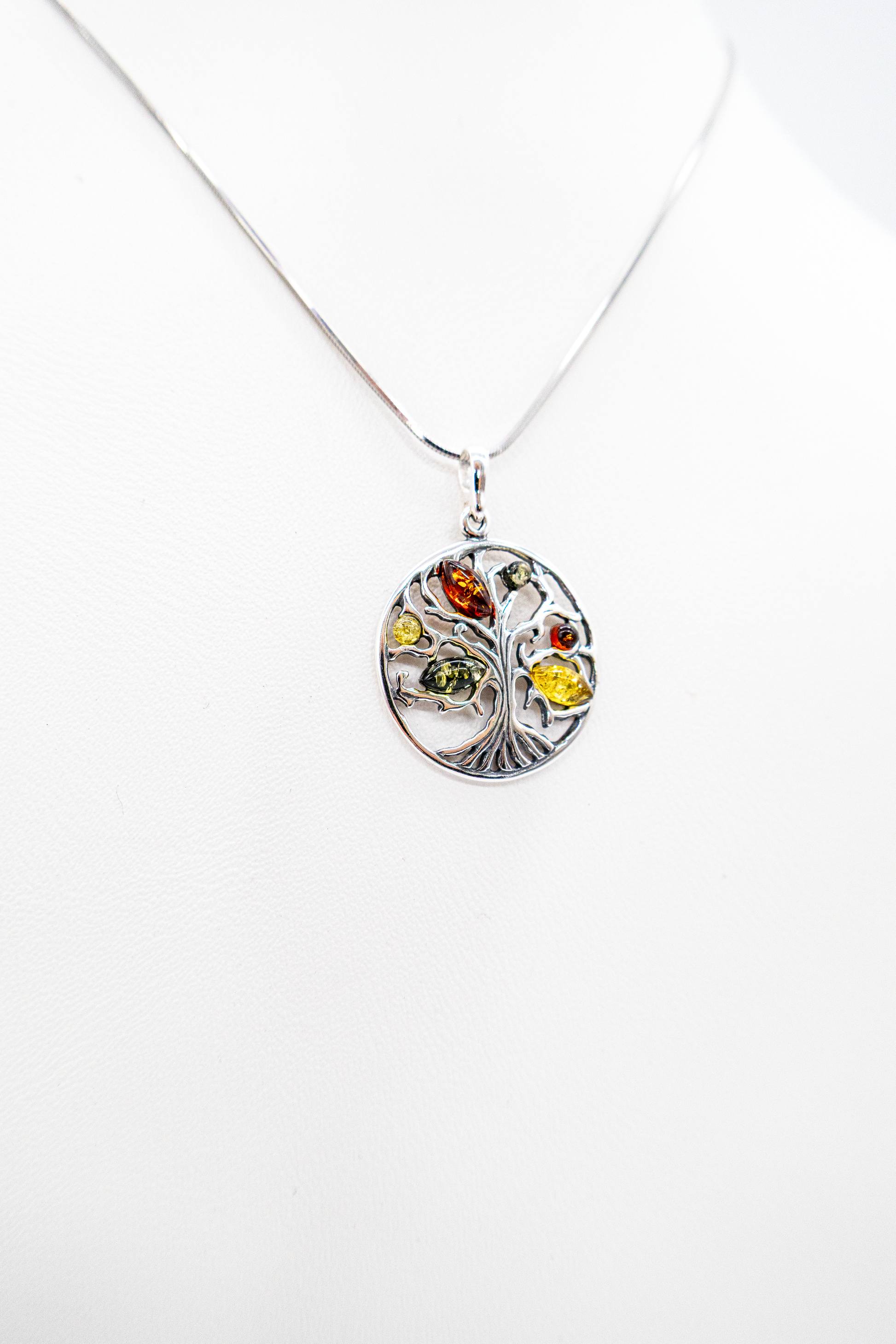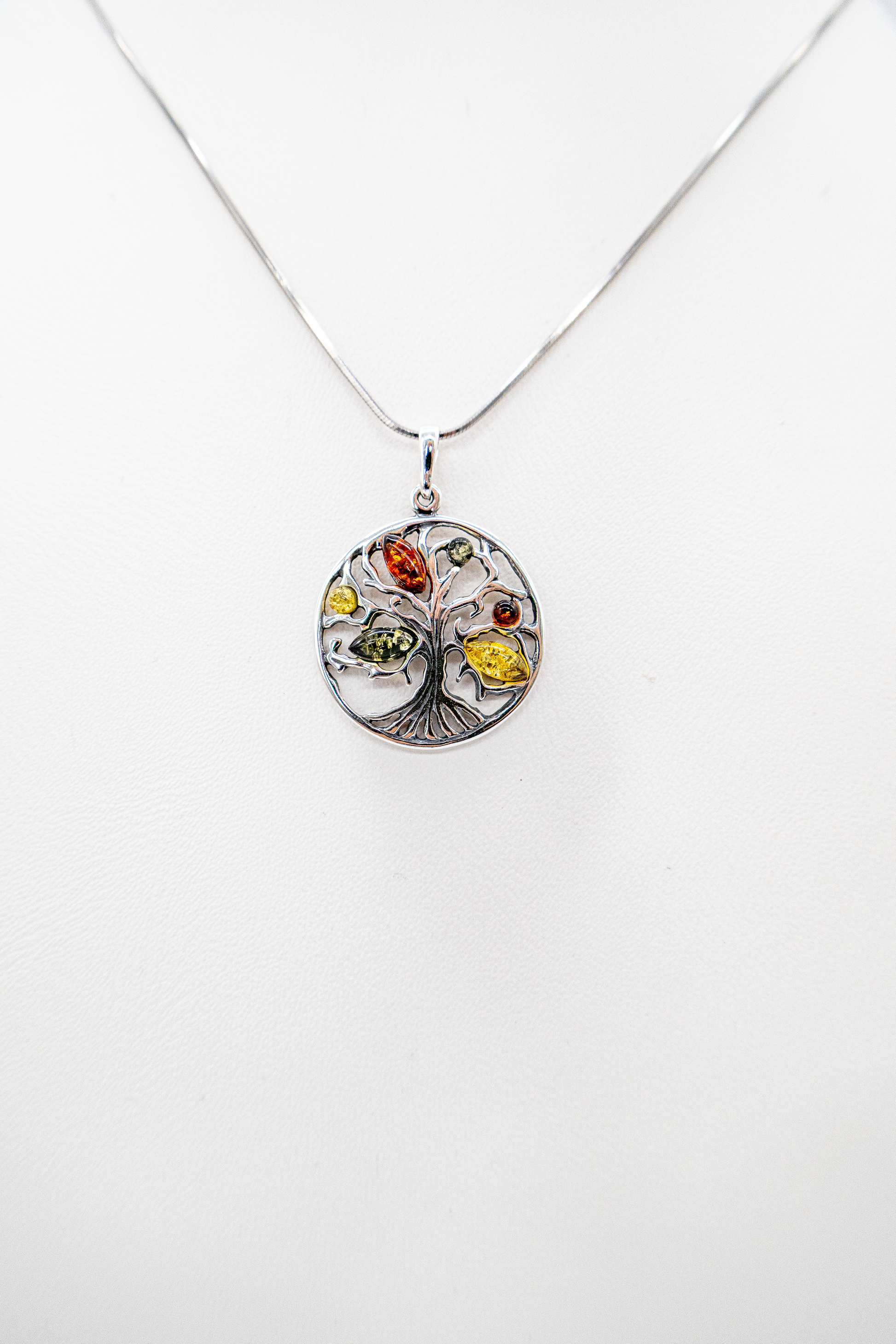 Lebensbaum-Anhänger aus echtem Bernstein – 925 Silber