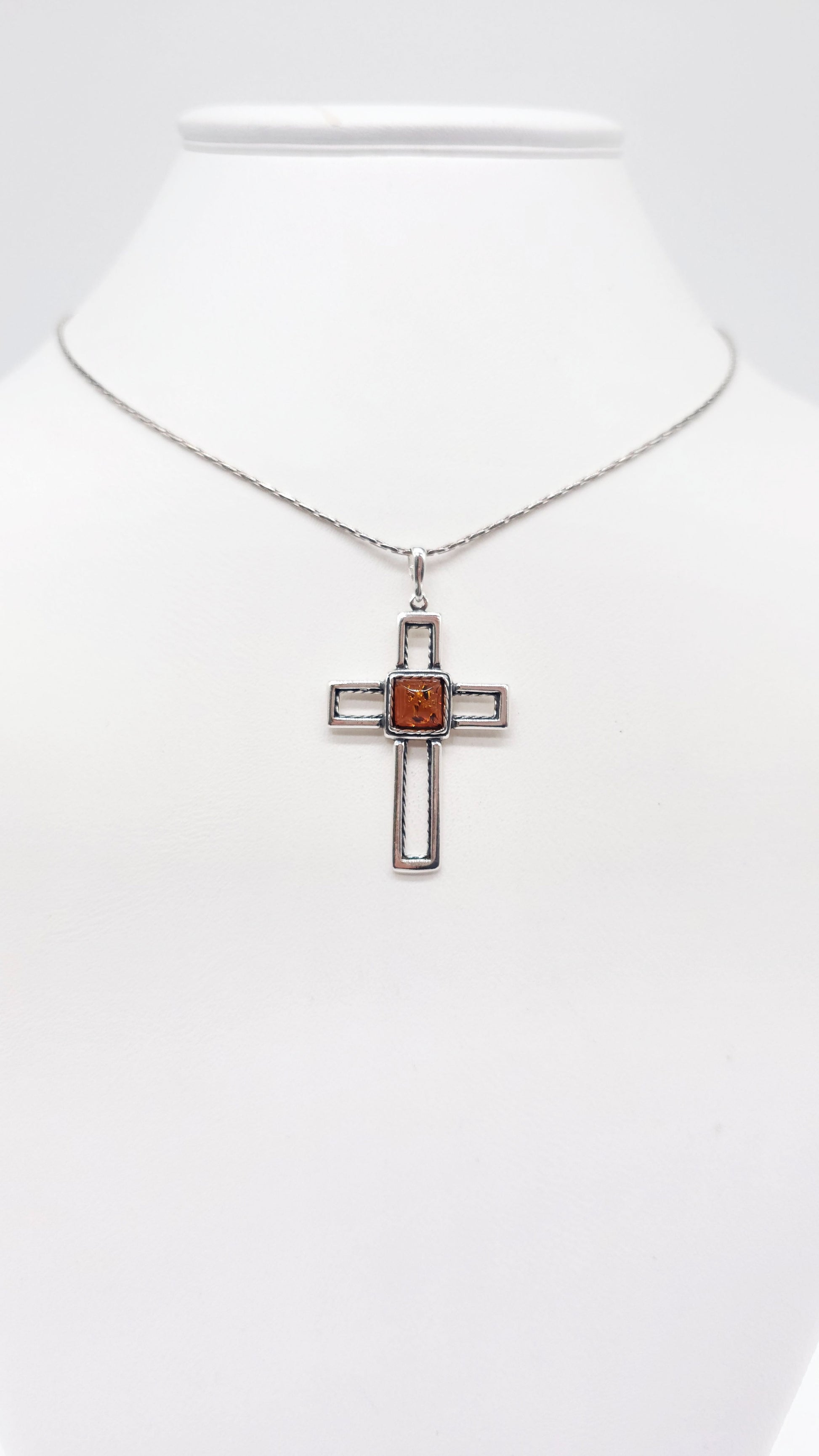 Kreuzanhänger aus Silber mit echtem Bernstein