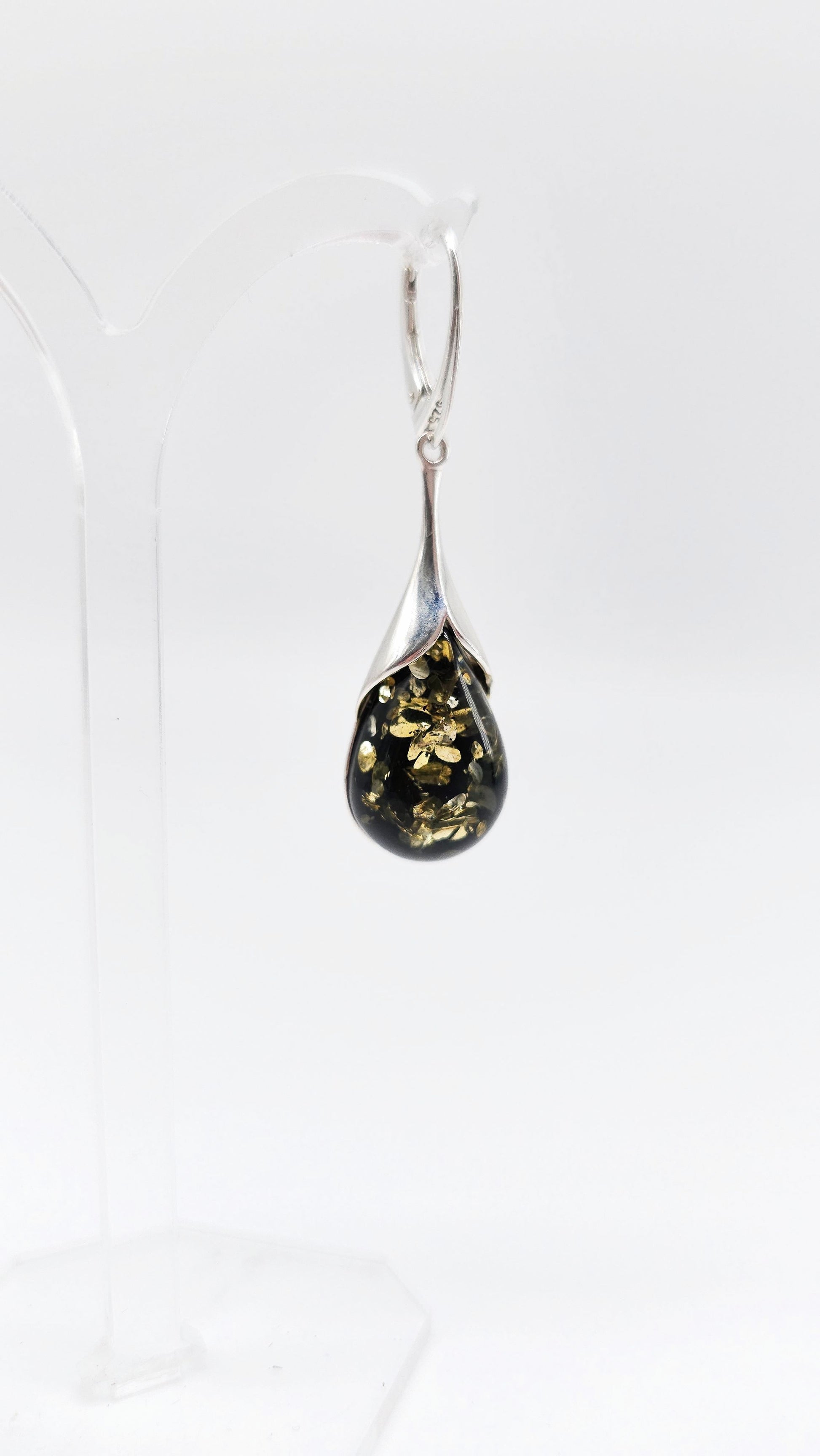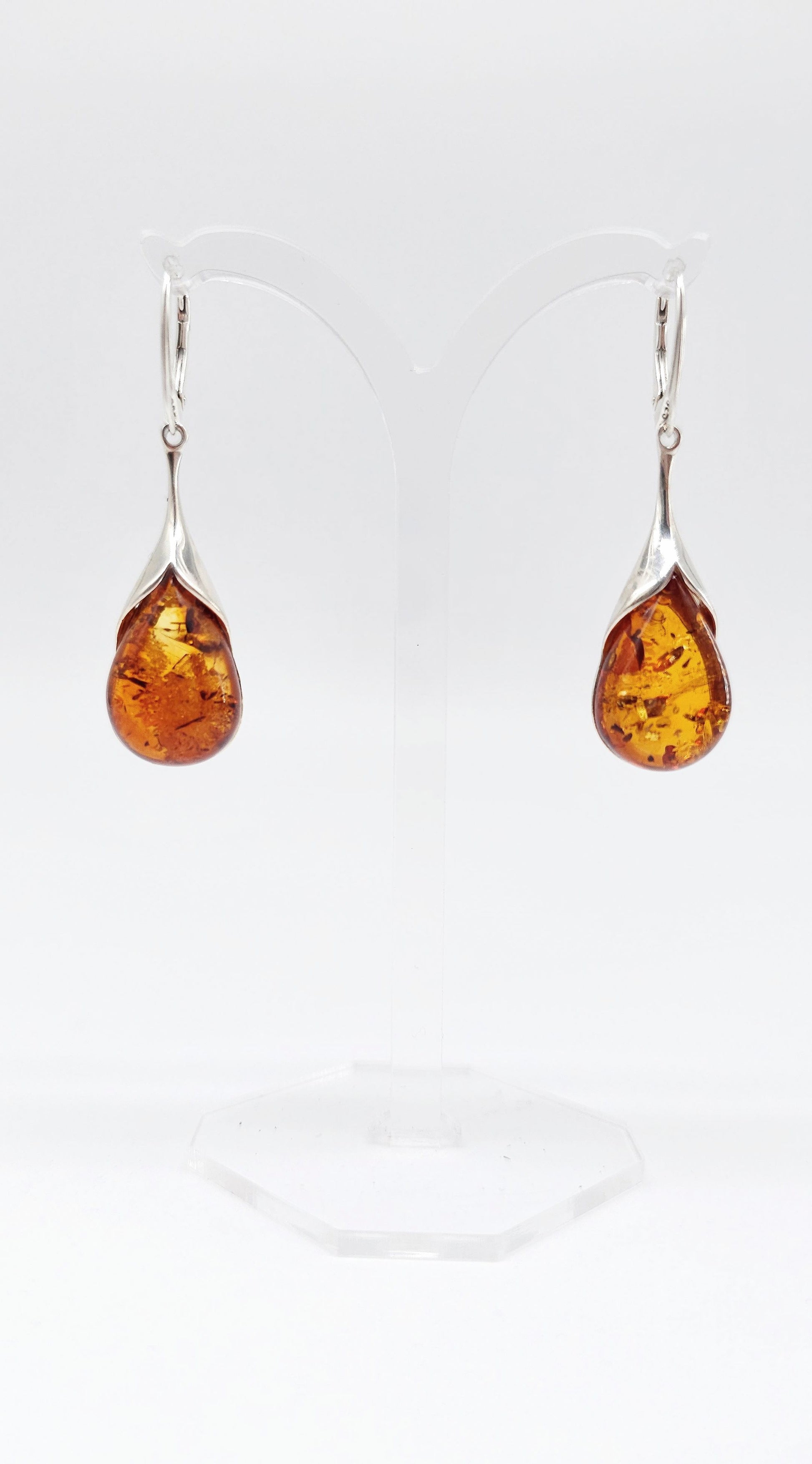 Damen Ohrringe Tropfen Bernstein mit Silberelementen