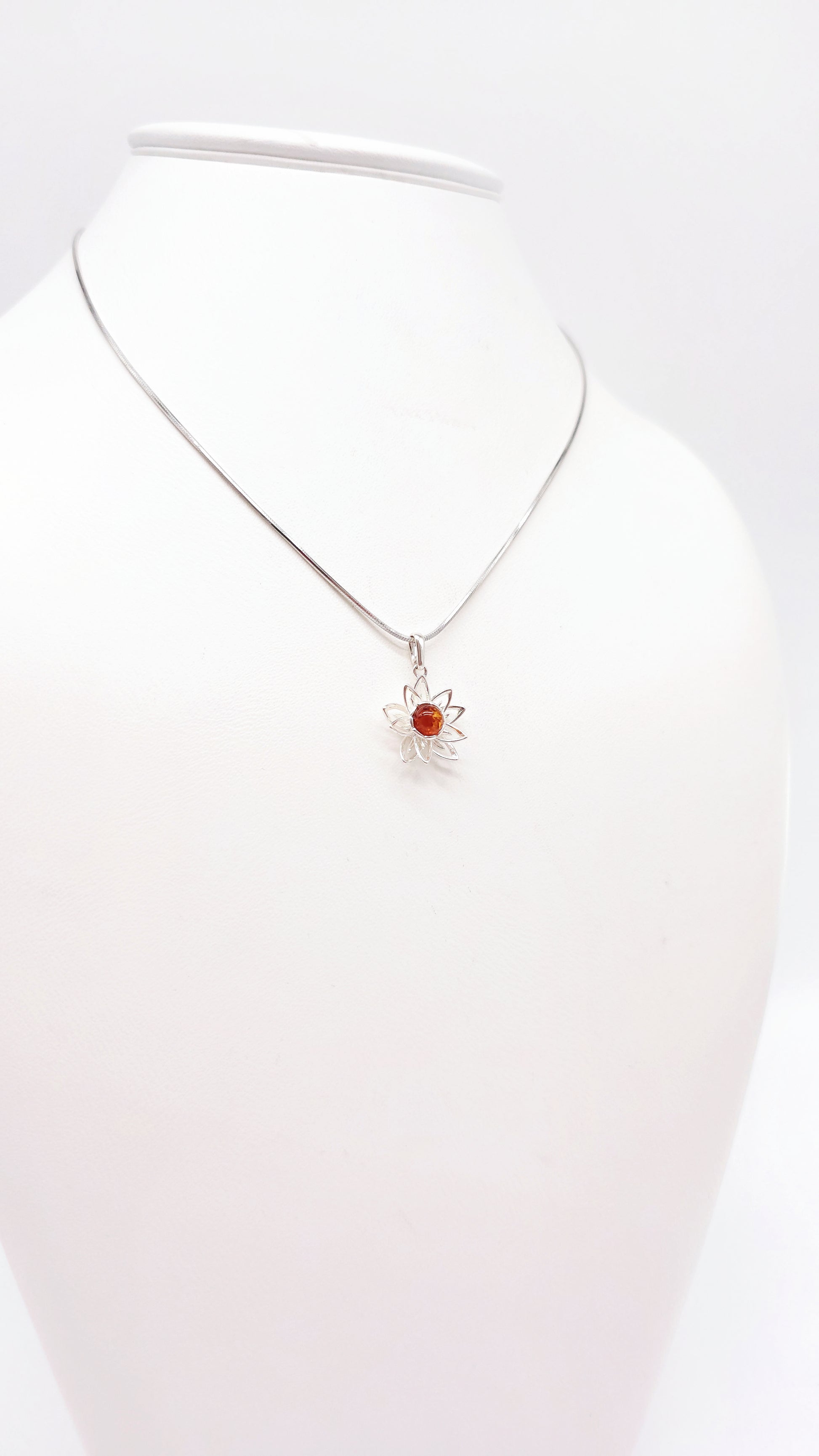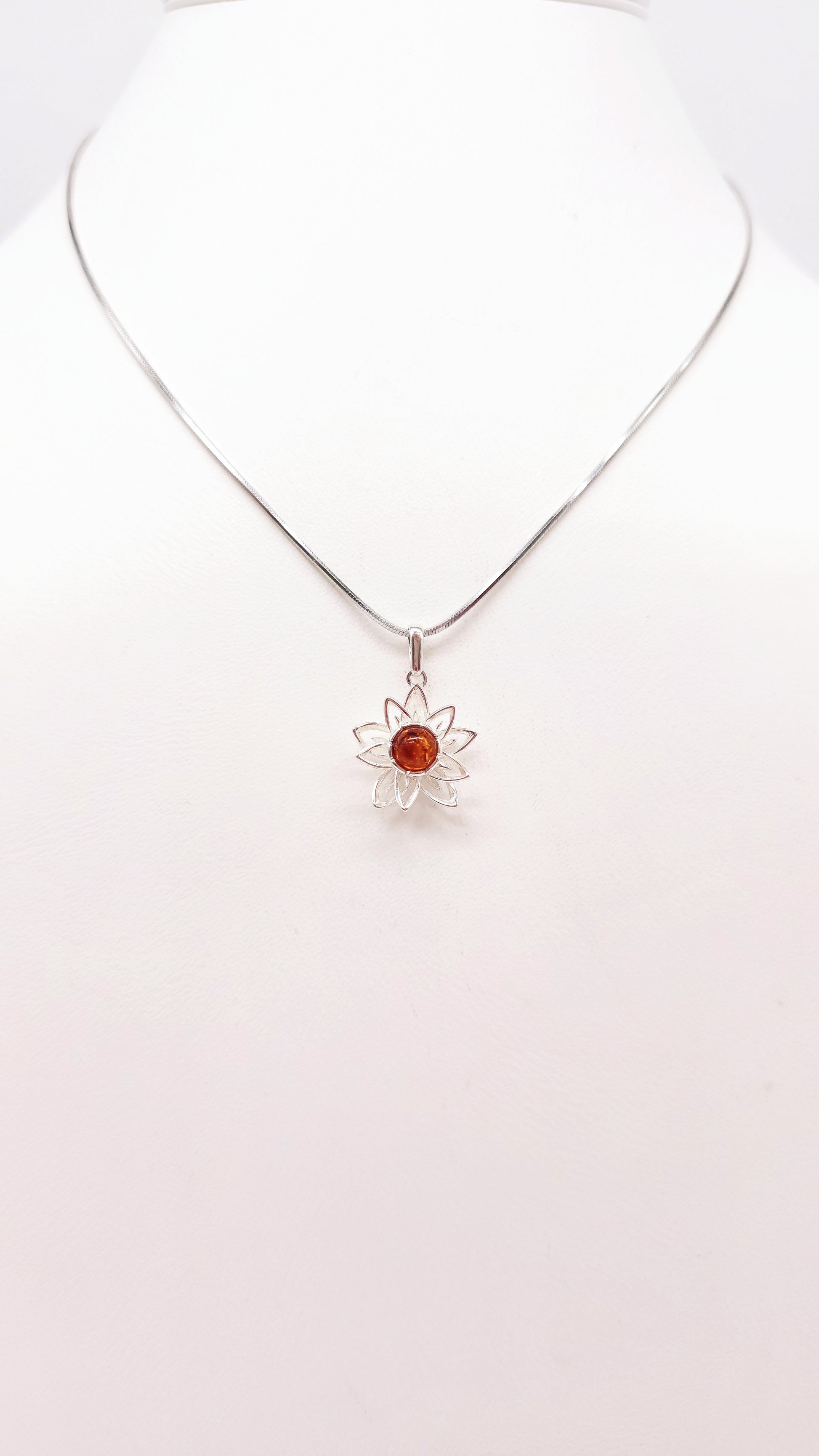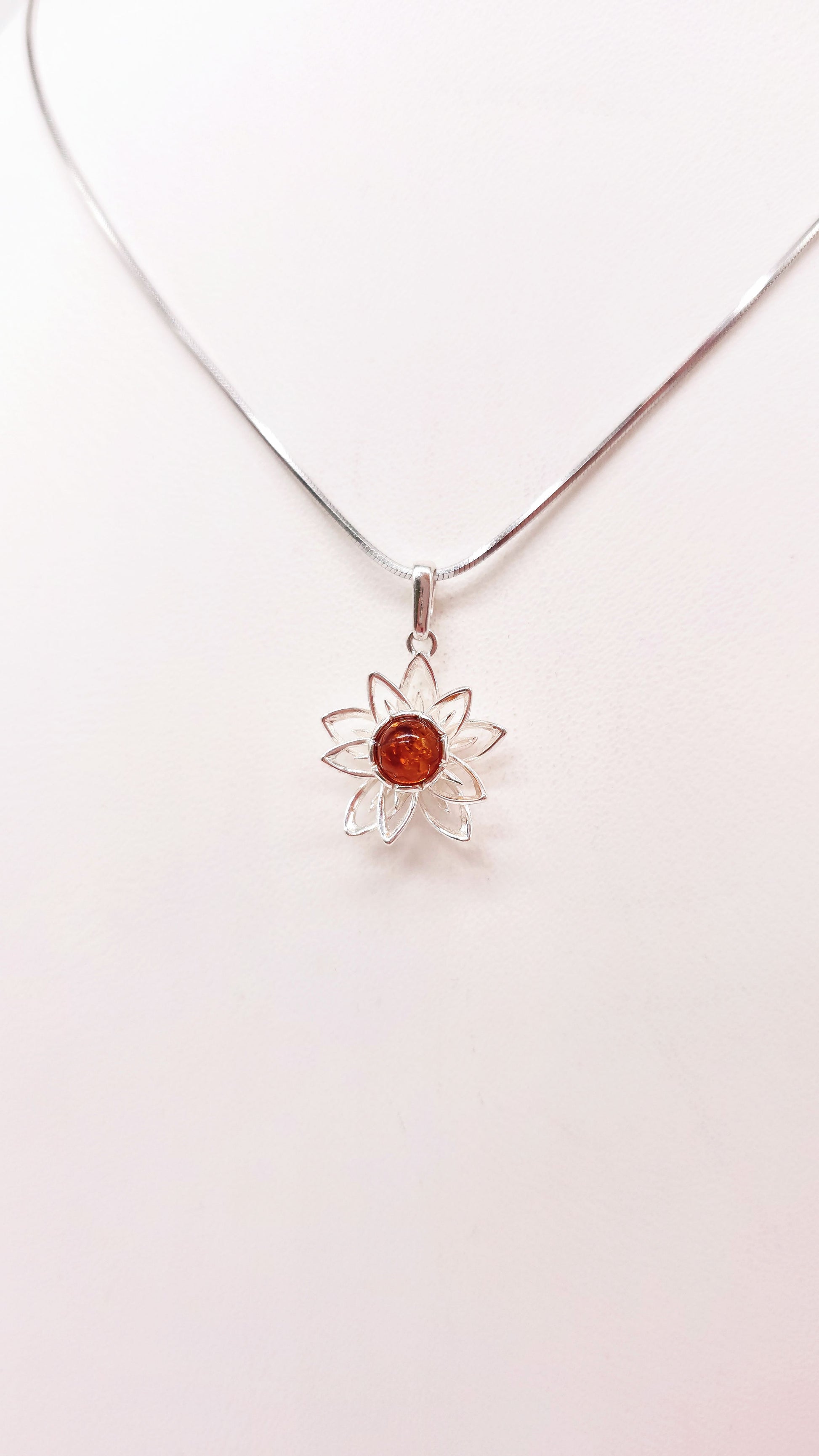 Schmuckanhänger Blume mit Bernstein – hochwertiges Geschenk