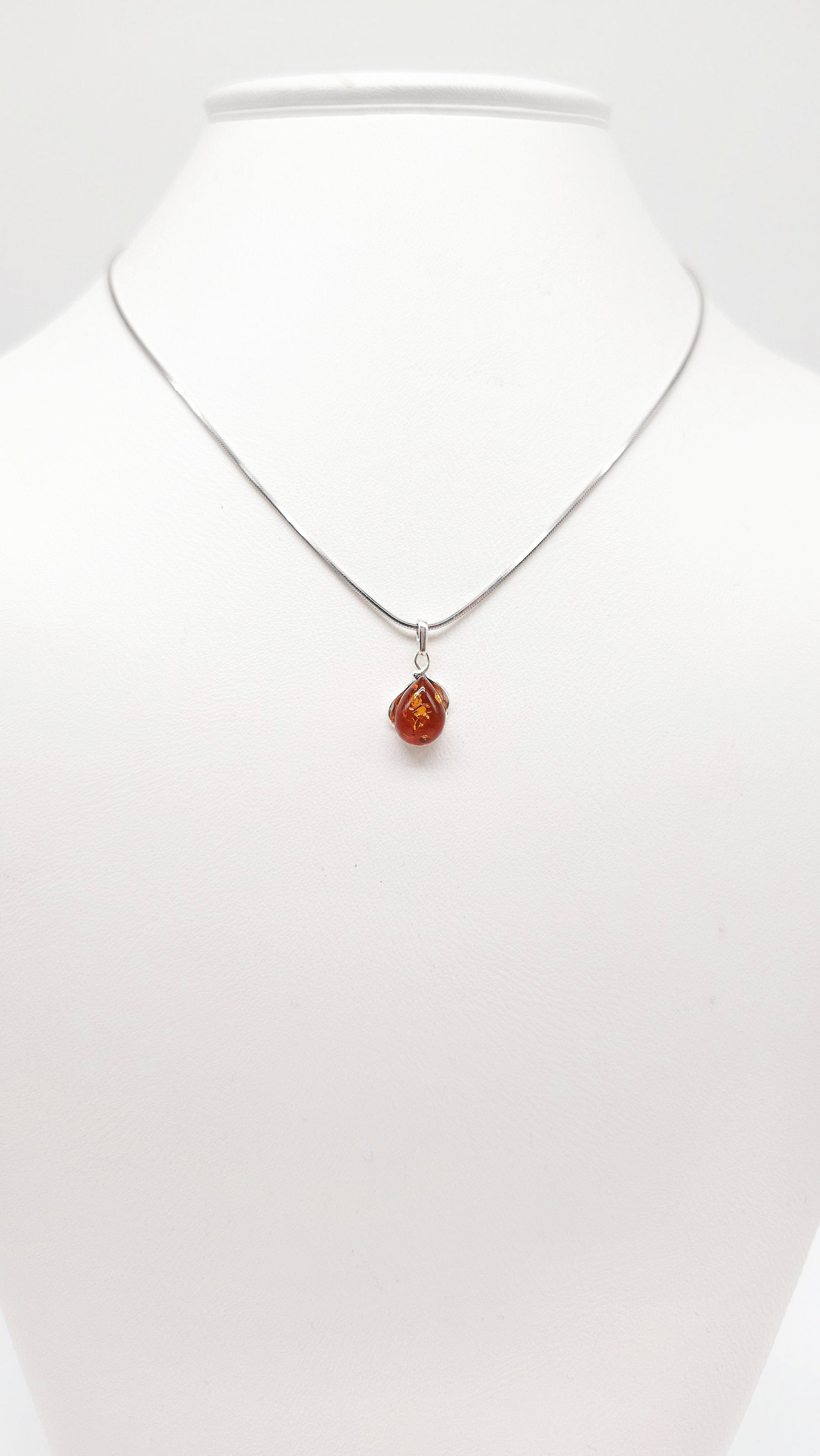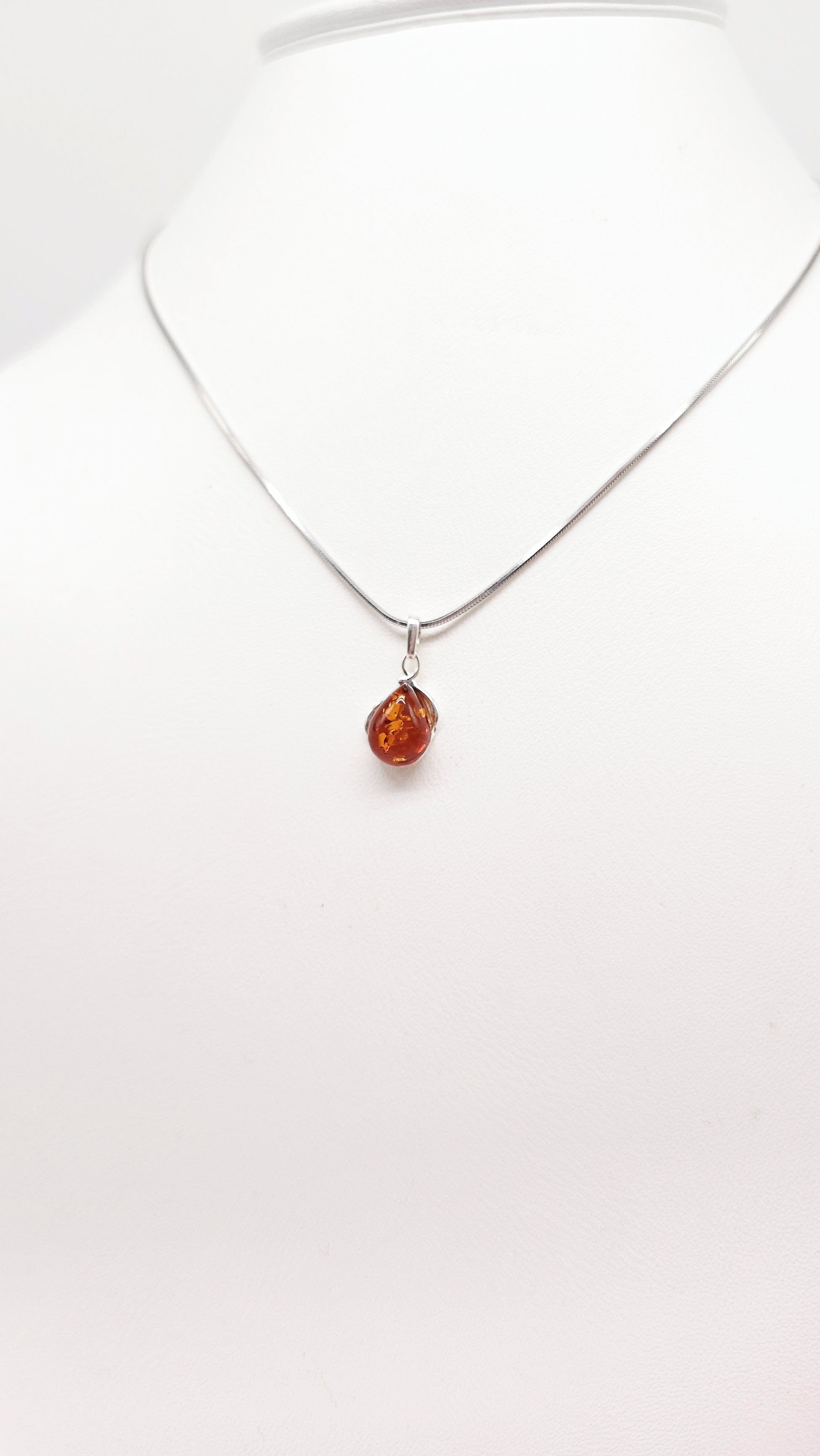Dieser elegante Anhänger besticht durch seinen tropfenförmig geschliffenen grünen Bernstein, der in einer filigranen 925er Silberfassung sitzt. Die feinen Einschüsse im Naturstein verleihen dem Schmuckstück eine geheimnisvolle Tiefe – jeder Anhänger ist ein Unikat.
