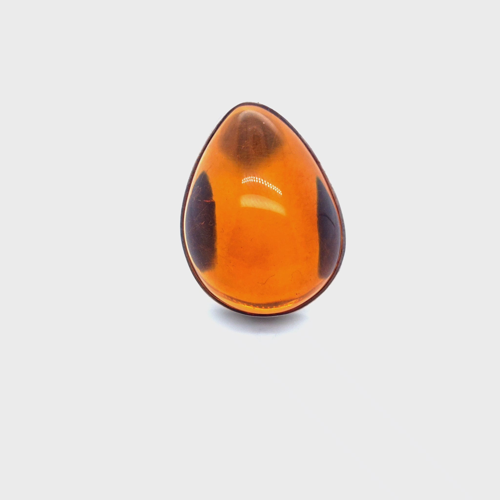 Der große tropfenförmige Bernstein mit natürlicher Transparenz und warmem Farbspiel macht jedes Stück zu einem einzigartigen Unikat während die verstellbare Ringschiene eine flexible Größenanpassung ermöglicht