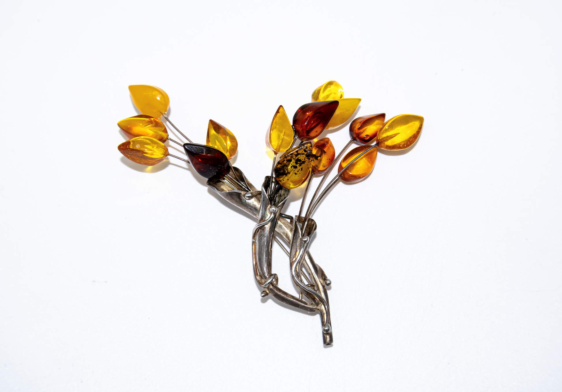 Bernstein Brosche Blütenform – handgefertigtes Unikat