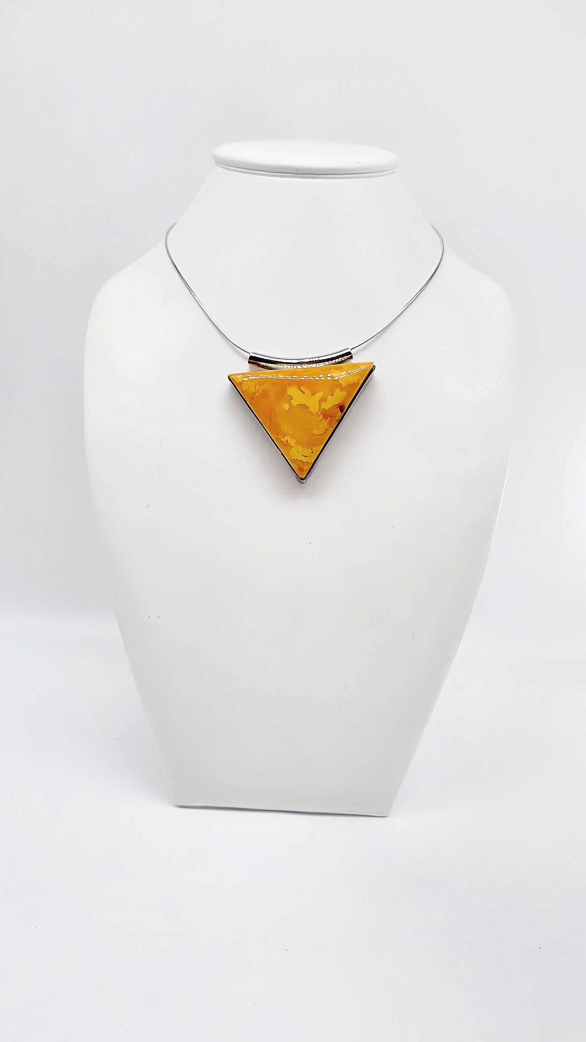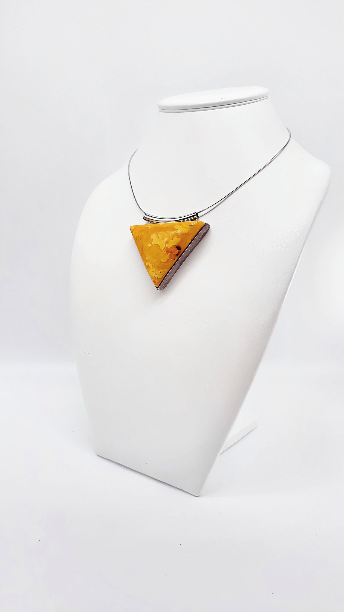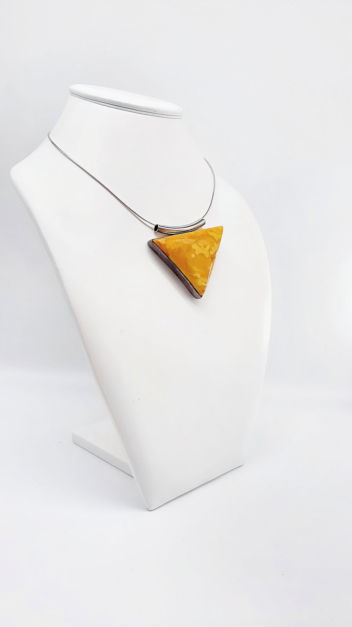 Dieser außergewöhnliche Bernsteinanhänger in dreieckiger Form vereint geometrische Eleganz mit natürlicher Schönheit. Der leuchtend goldene Bernstein, eingefasst in eine schlichte Silberfassung, zieht alle Blicke auf sich und verleiht jedem Outfit einen modernen und dennoch zeitlosen Akzent. Jeder Anhänger ist ein Unikat und zeigt die einzigartige Struktur und Farbe des Bernsteins, wodurch jedes Stück zu einem besonderen Highlight wird. Perfekt für besondere Anlässe oder um Ihrem Alltagslook das gewisse Etwas zu verleihen.