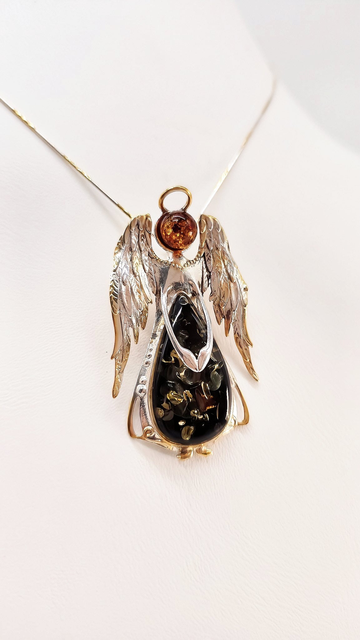 Engel Anhänger mit echtem Bernstein – Schutz & Eleganz