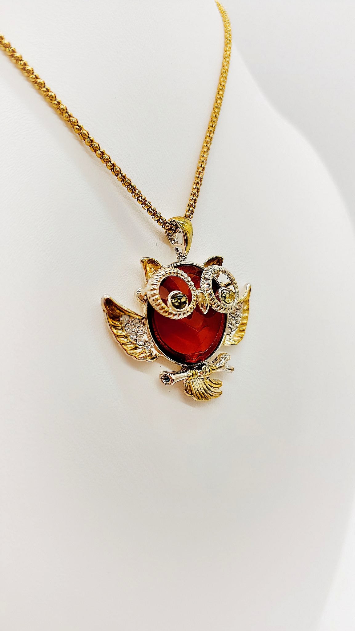 Erwecken Sie Ihre Liebe zur Natur mit diesem bezaubernden Eulen-Anhänger, sorgfältig gefertigt aus 925er Sterlingsilber und doppelt hartvergoldet mit 24 Karat Gold. Das Herzstück bildet ein satt bernsteinfarbener Stein, umgeben von silbernen Verzierungen, die die Weisheit und Wachsamkeit der Eule symbolisieren. Dieses einzigartige Schmuckstück vereint Eleganz mit einem Hauch von Mystik und ist das perfekte Geschenk für jeden Anlass.