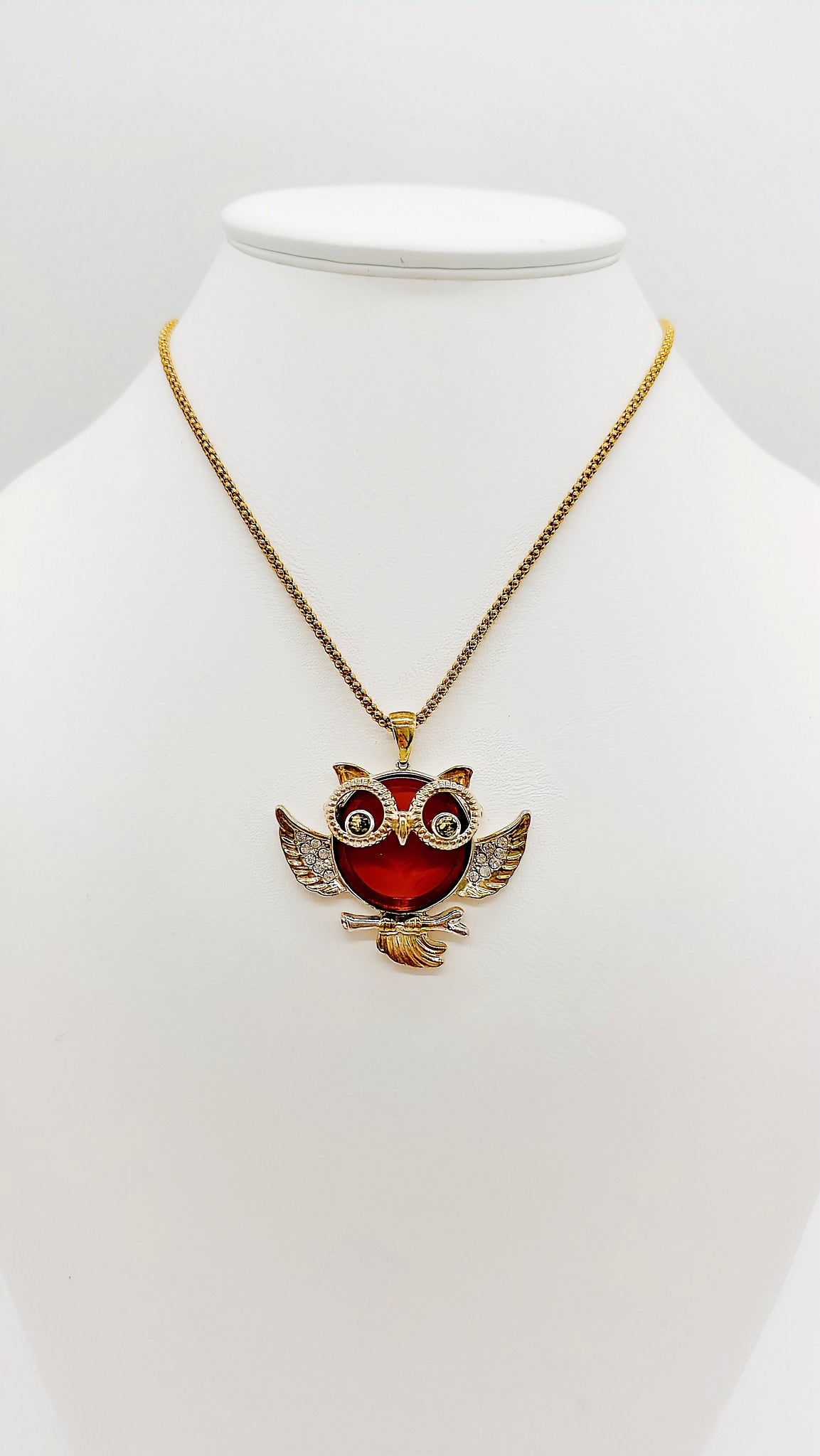Exquisiter Eulen-Anhänger aus Sterlingsilber und Bernstein