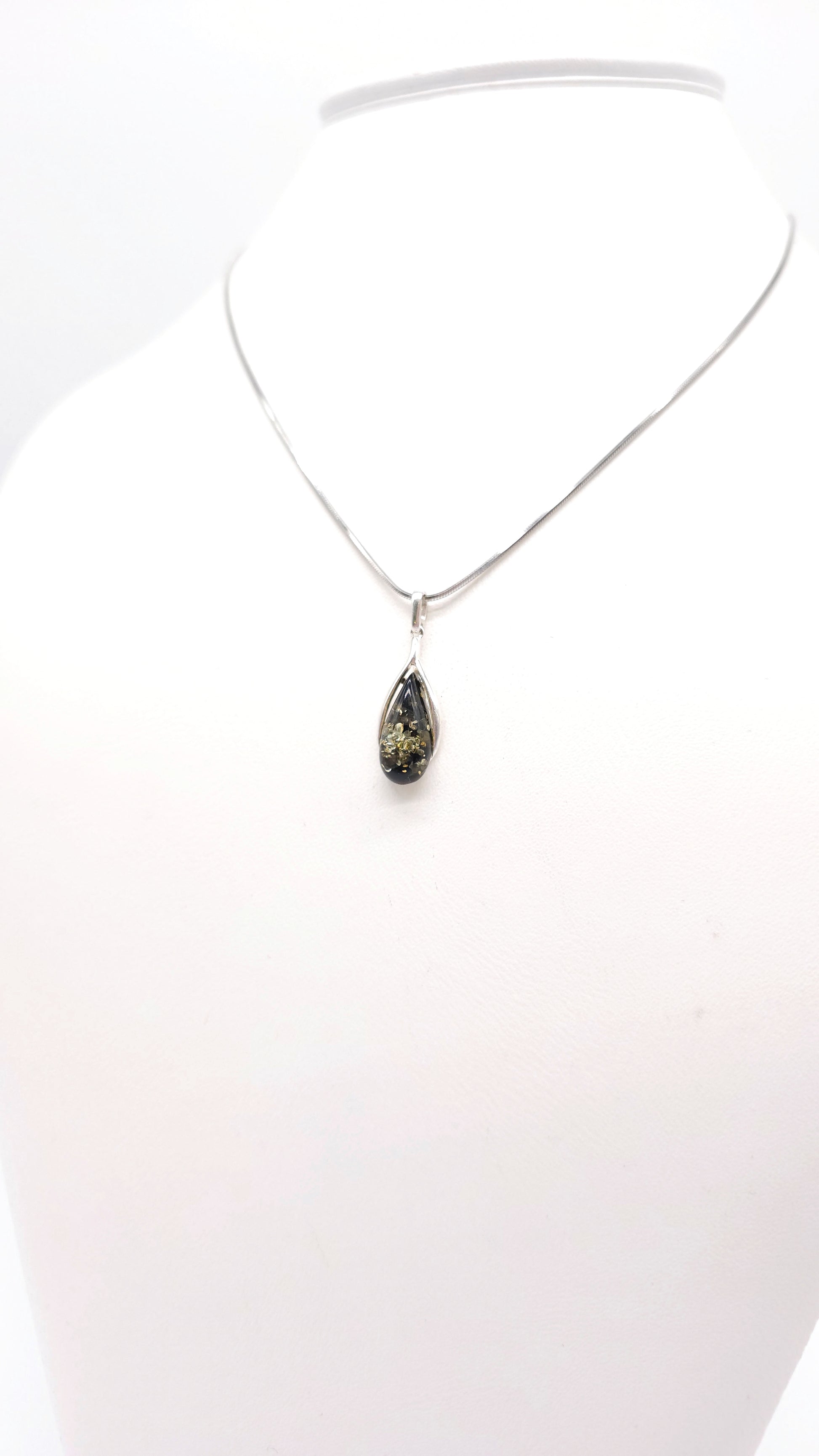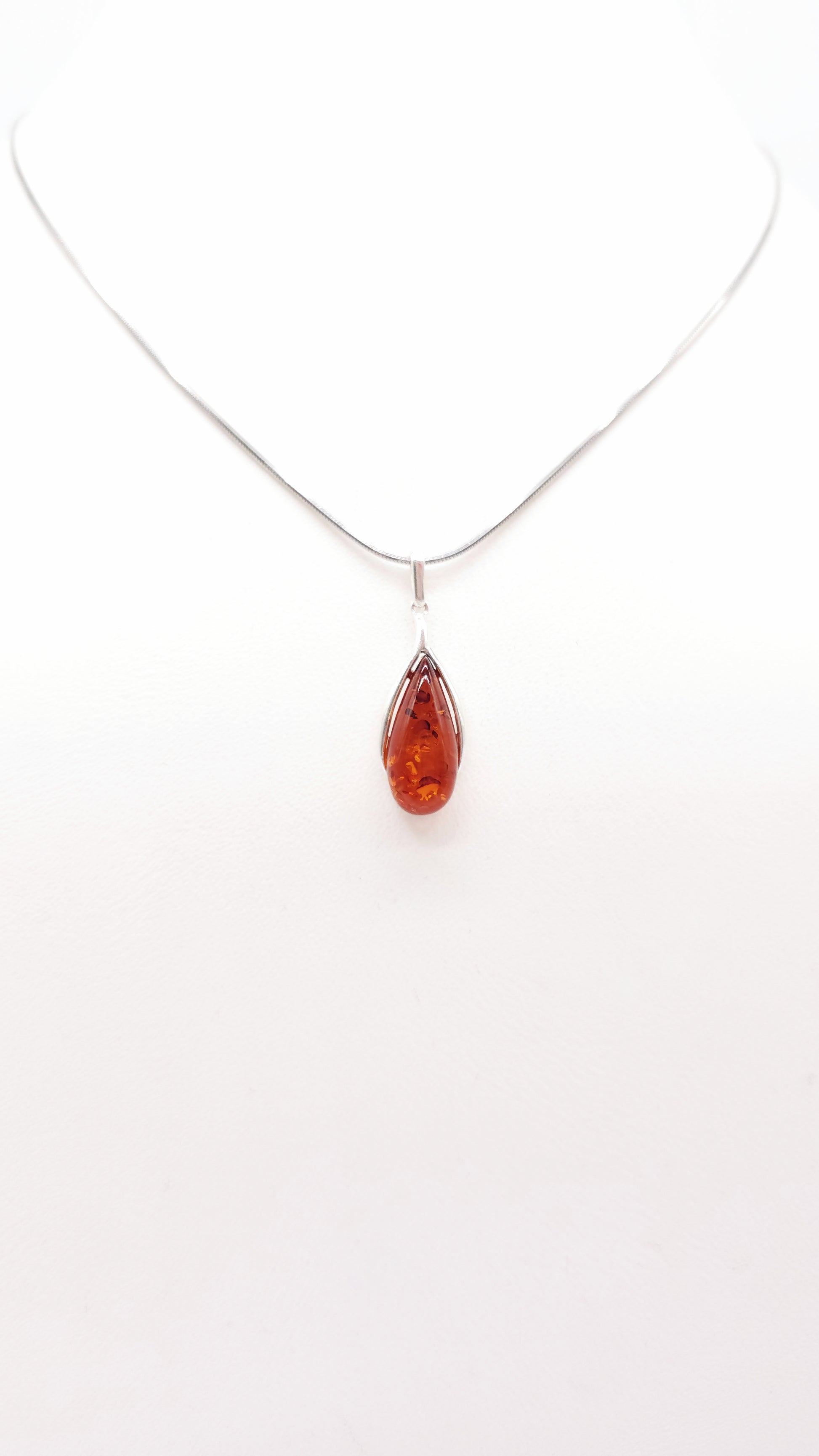 Tropfenförmiger Bernstein in Silberfassung