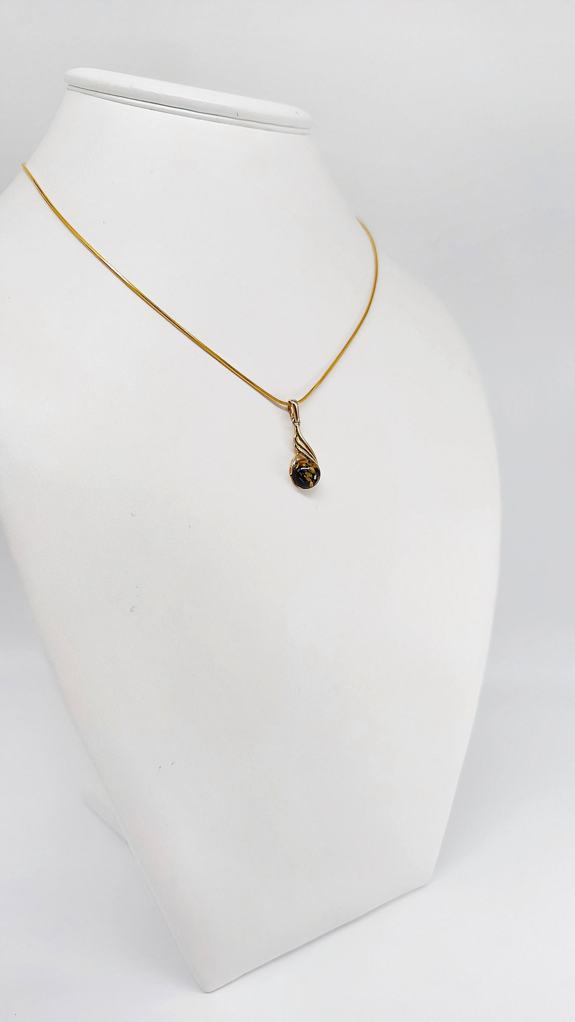 Jeder Anhänger ist ein handgefertigtes Unikat, das durch seine harmonische Kombination aus vergoldetem Silber und echtem Bernstein besticht. Ein zeitloser Begleiter für alle, die Wert auf hochwertige Materialien und stilvolles Design legen.