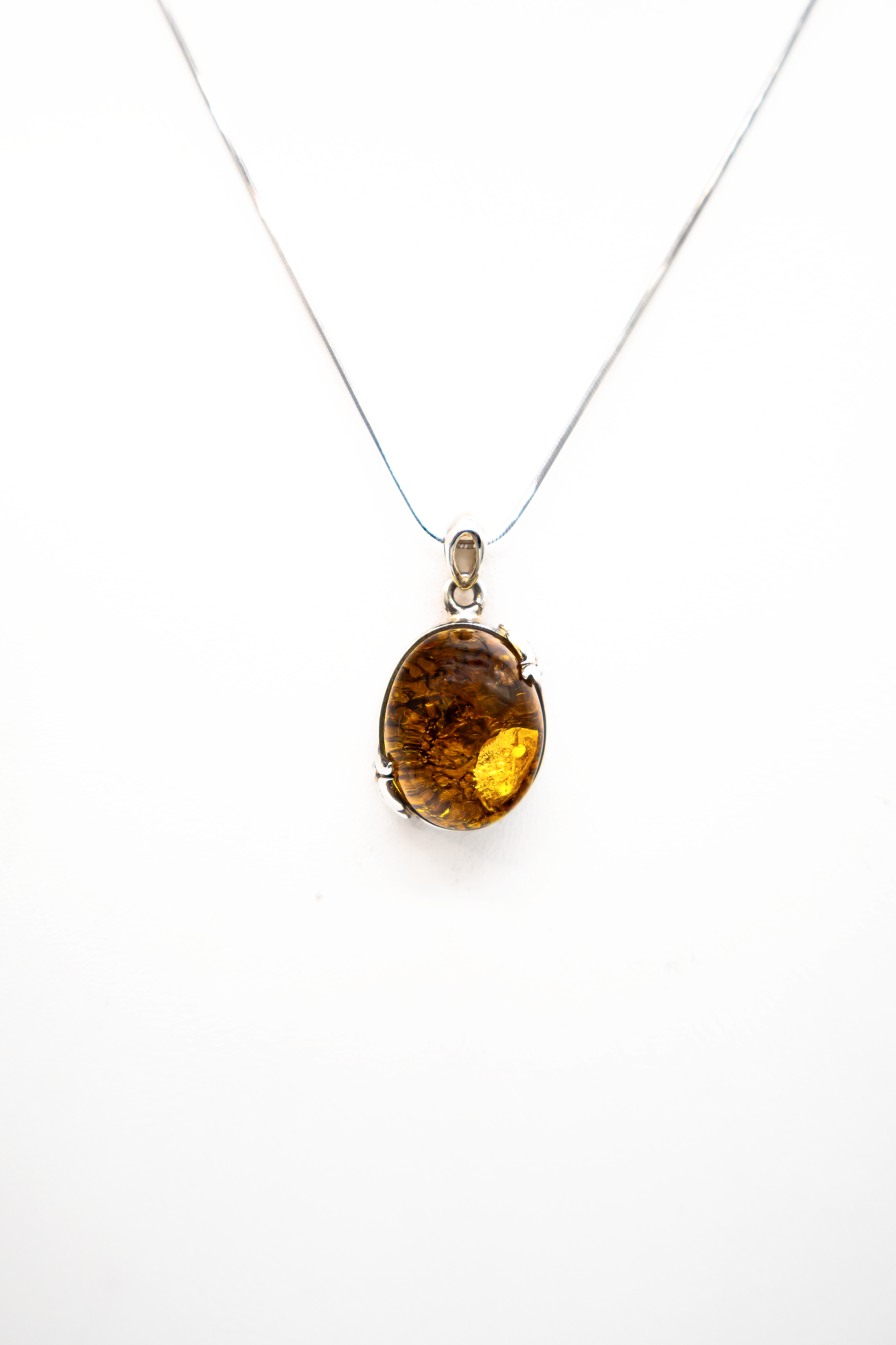Handgefertigter Bernsteinanhänger – Echter Stein in Silber