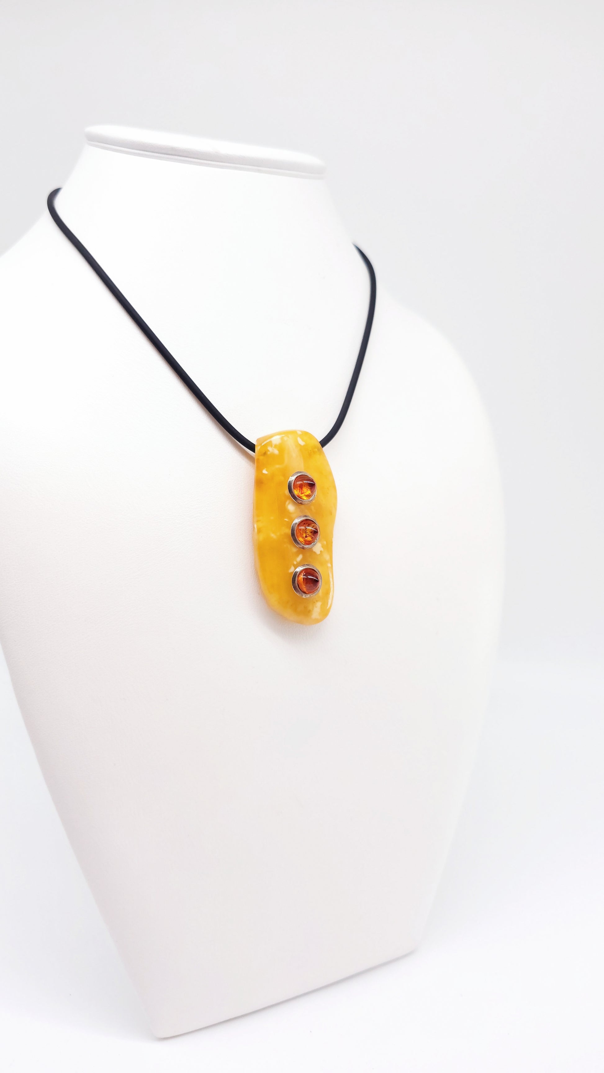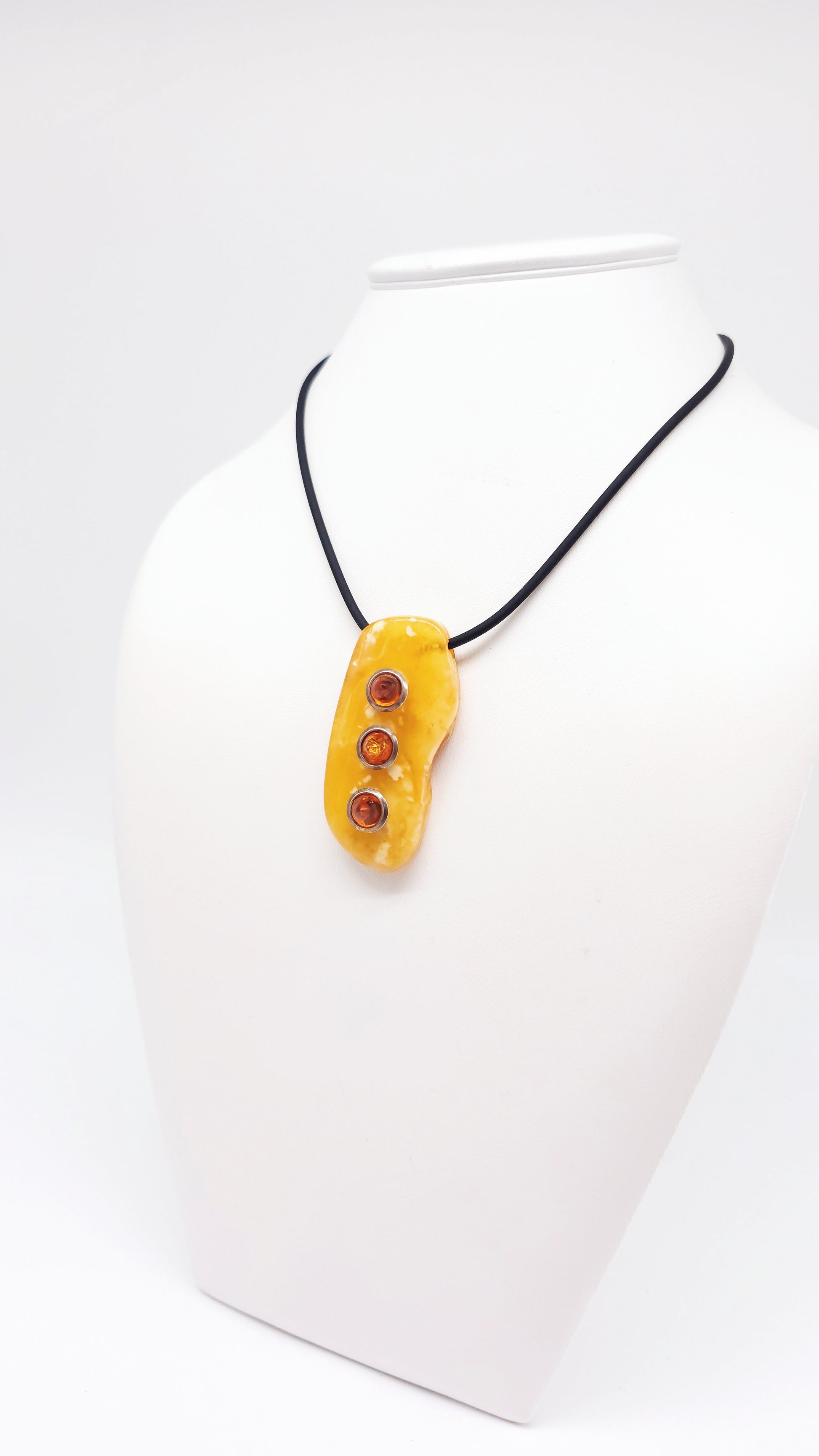 Handgefertigter Bernsteinanhänger mit drei Einlagen