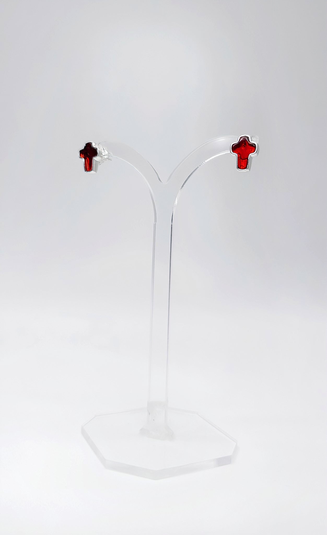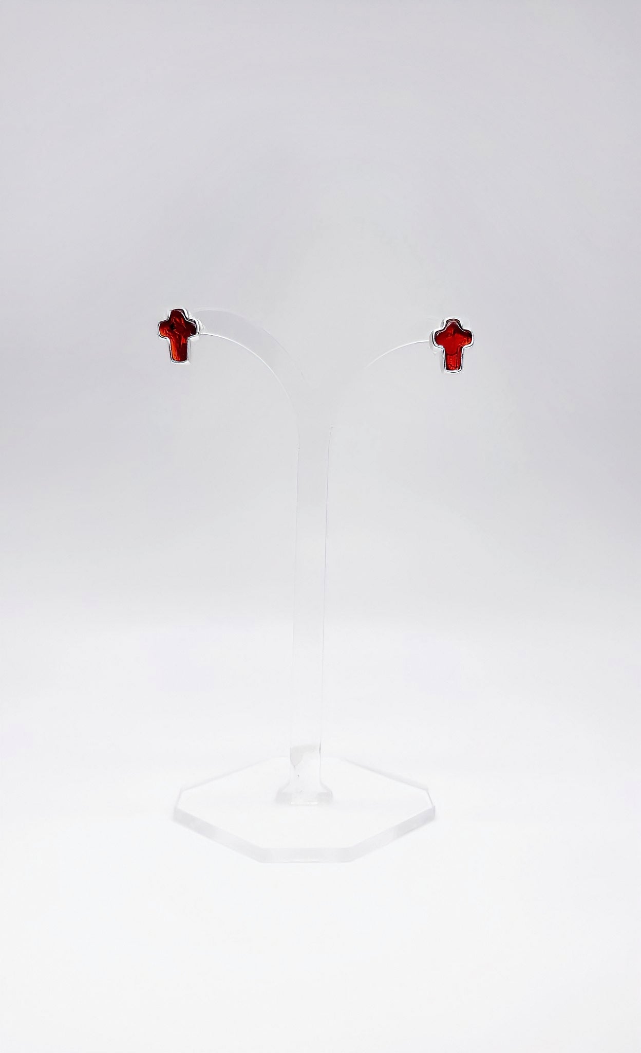 Kreuzförmige Ohrstecker mit rotem Bernstein aus Silber
