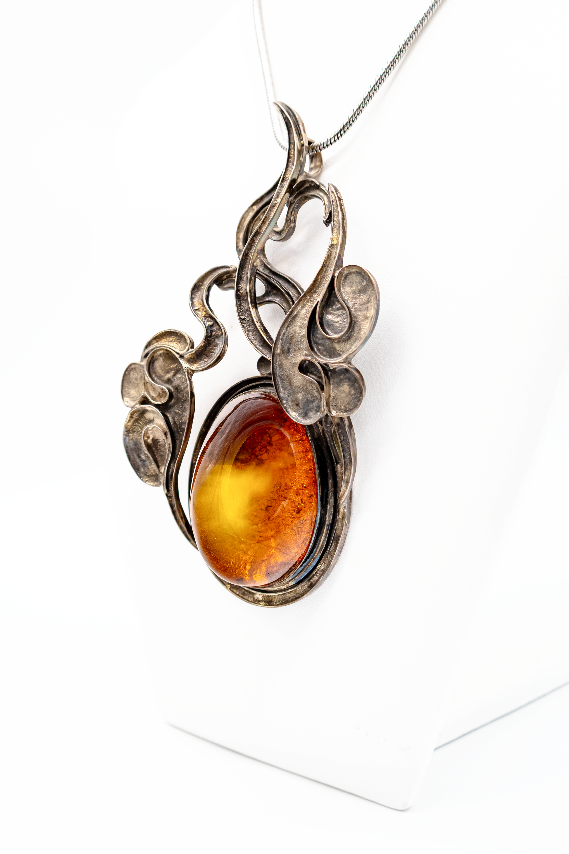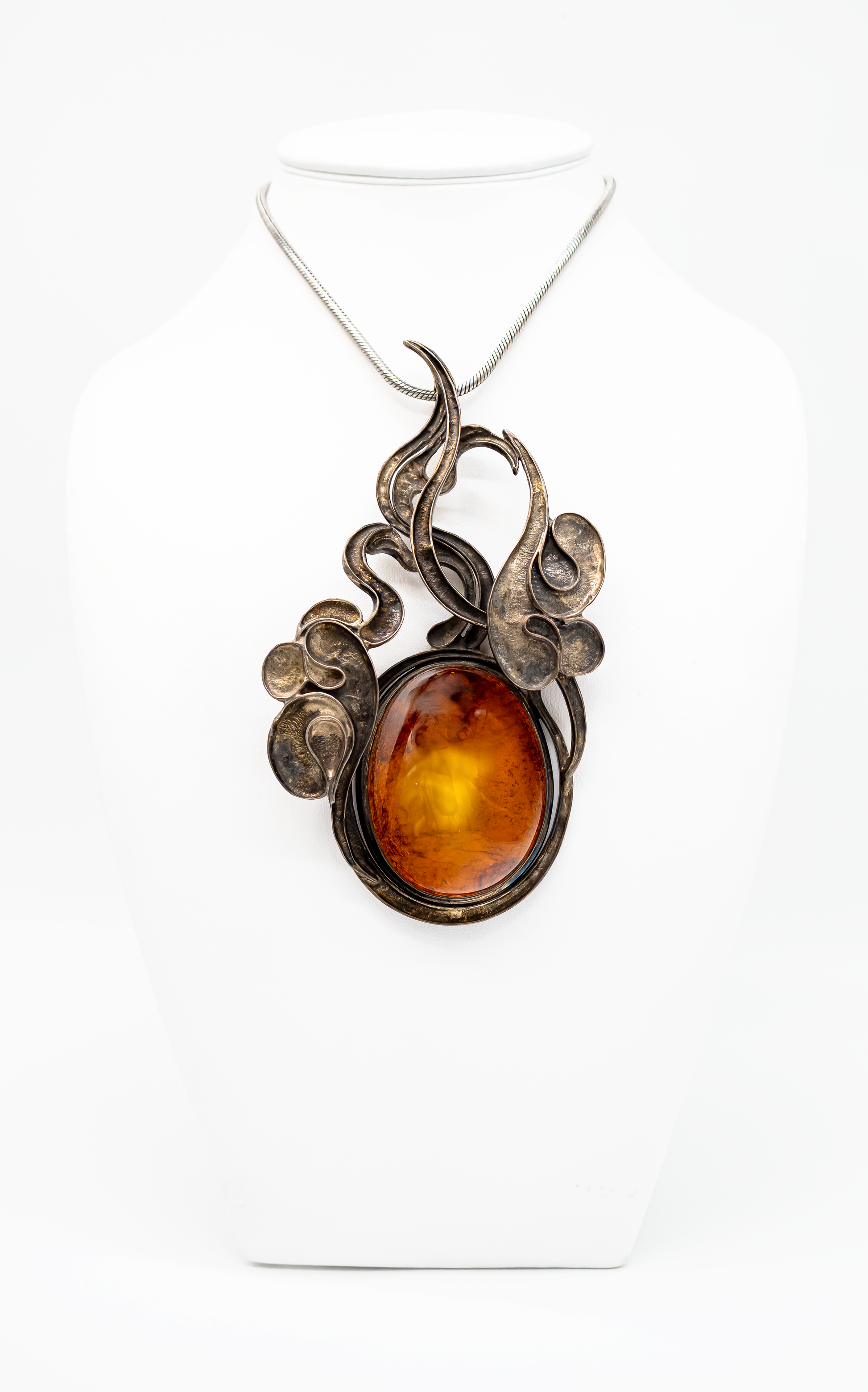 Künstlerischer Silberanhänger – Mit echtem Bernstein