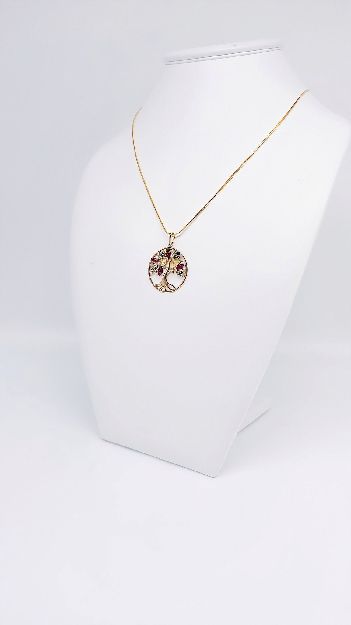Lebensbaum-Anhänger aus vergoldetem 925er Silber mit Bernstein