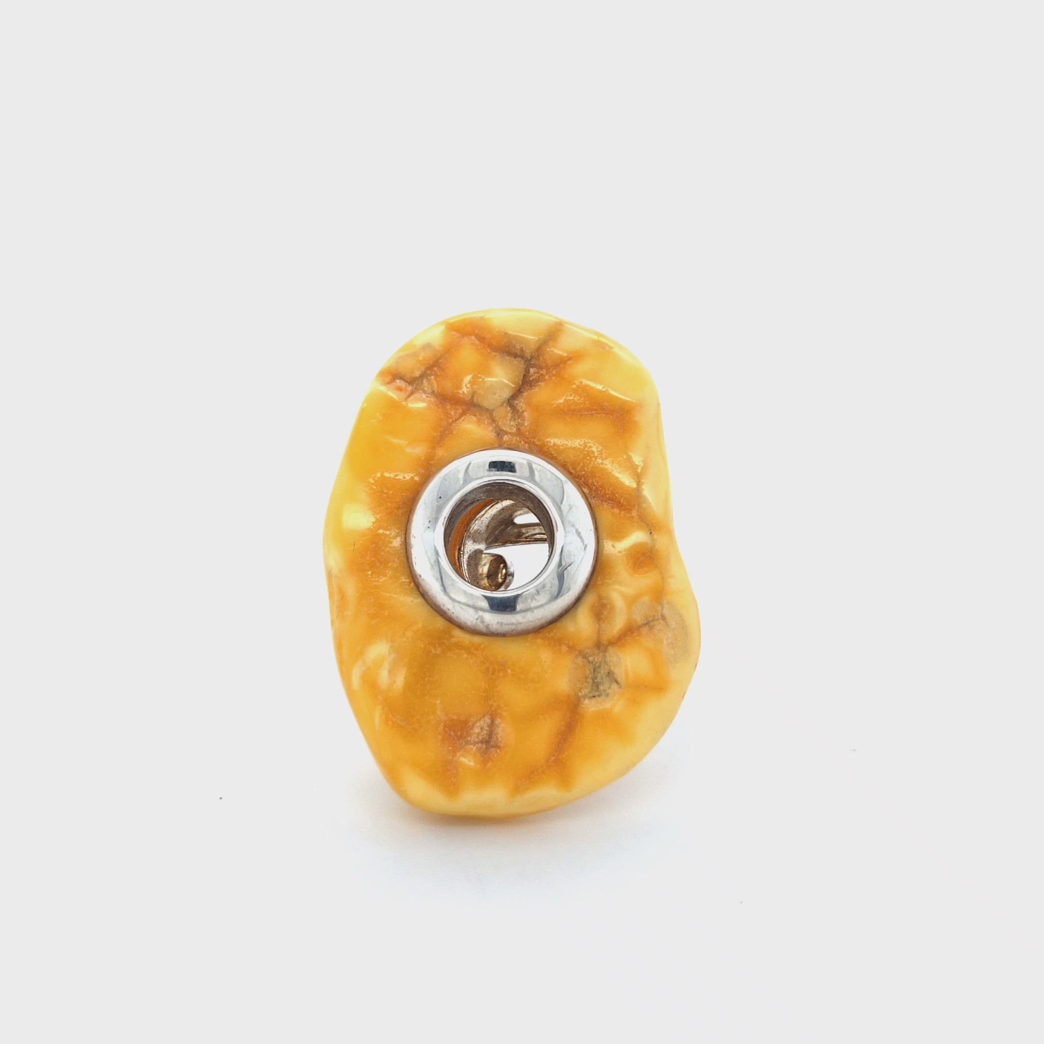 Die natürliche Bernsteinstruktur mit sanften Farbwolken und die verstellbare Ringschiene machen diesen Ring zu einem komfortablen und außergewöhnlichen Einzelstück.