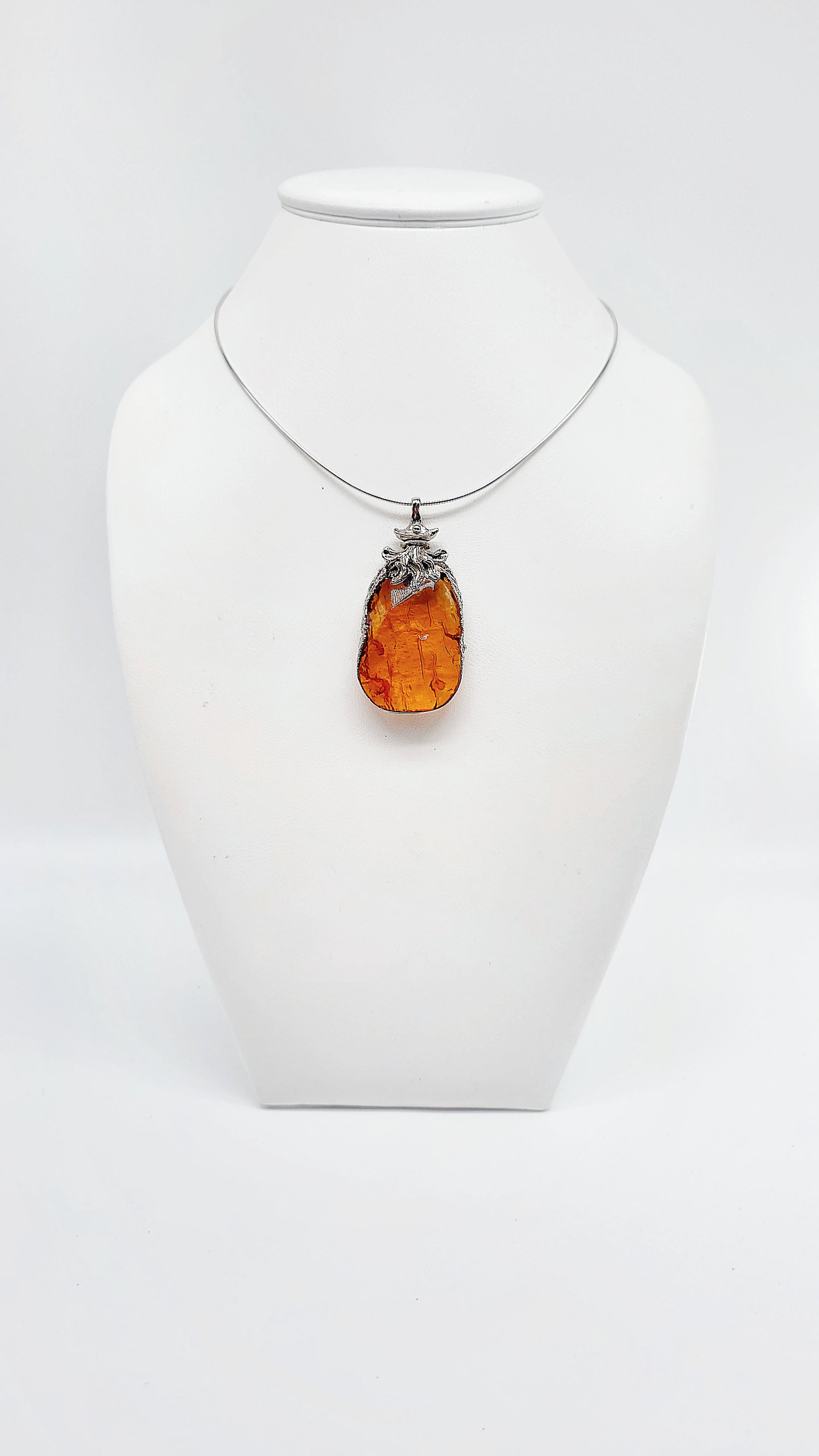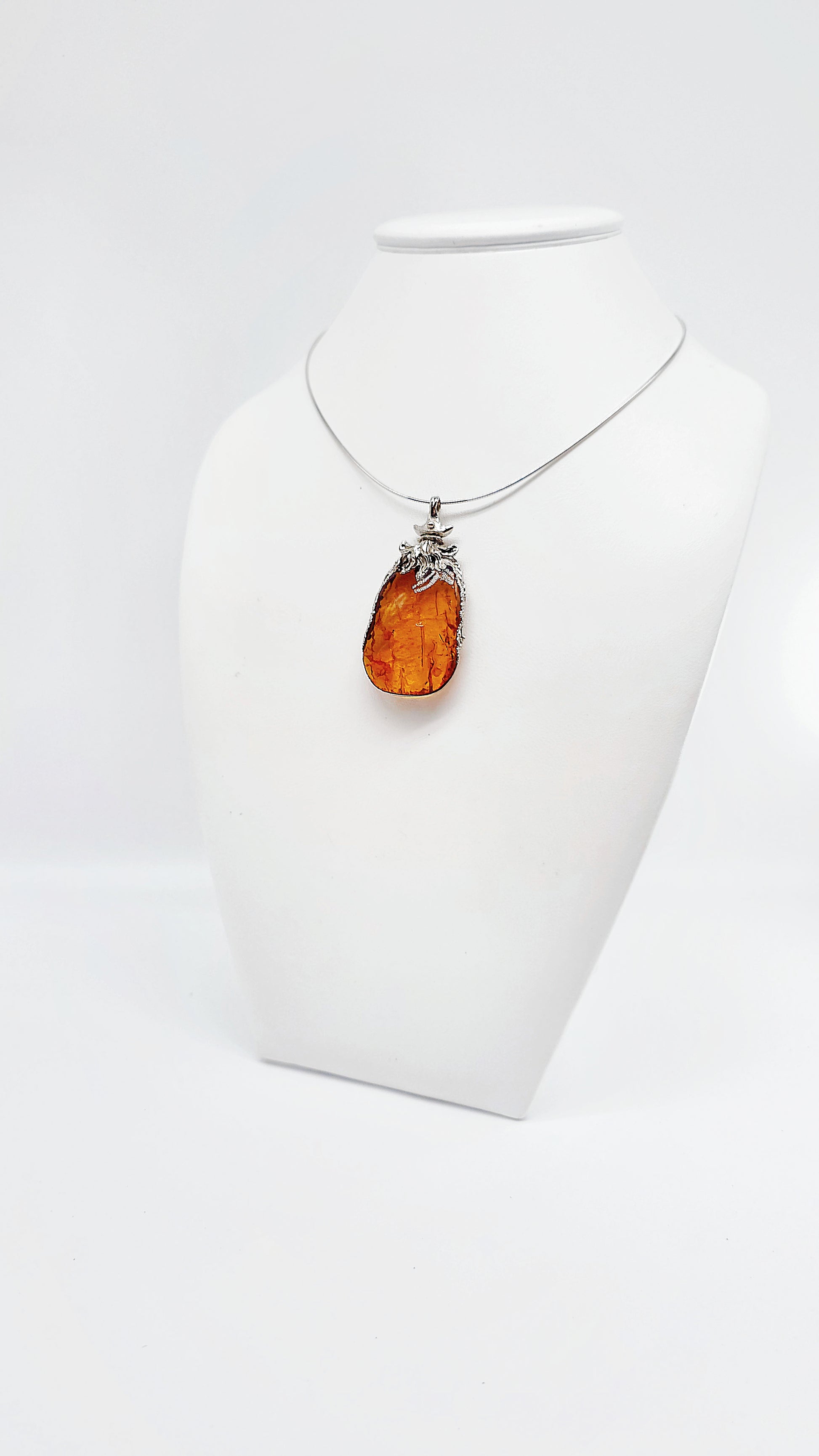 Dieser beeindruckende Bernsteinanhänger fasziniert durch seinen leuchtend goldenen Glanz und die kunstvolle Silberfassung. Der Anhänger zeigt die natürliche Schönheit des Bernsteins, wobei jeder Stein ein Unikat ist und durch seine individuelle Struktur und Farbgebung besticht. Die elegante Silberfassung verleiht dem Schmuckstück eine edle Note und macht es zu einem perfekten Accessoire für besondere Anlässe oder als täglicher Begleiter, der Ihrem Look einen Hauch von natürlicher Eleganz verleiht.