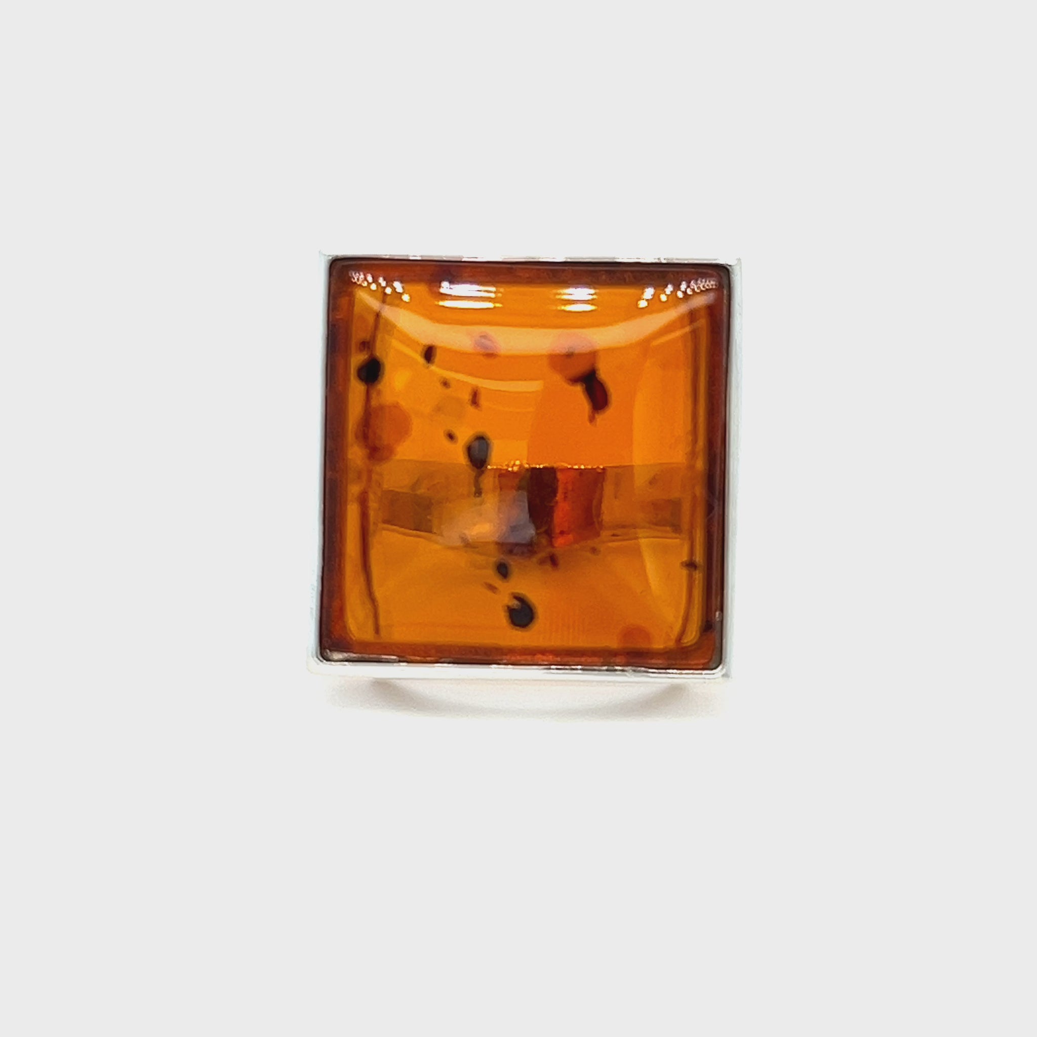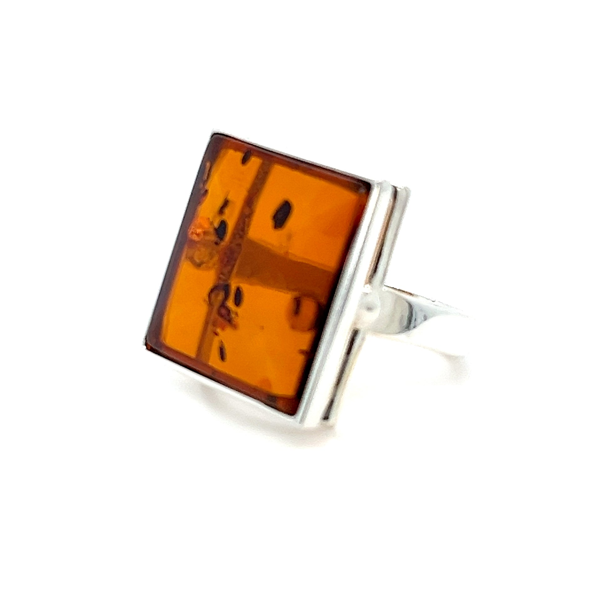 Quadratischer Bernsteinring – stilvoller Silberschmuck