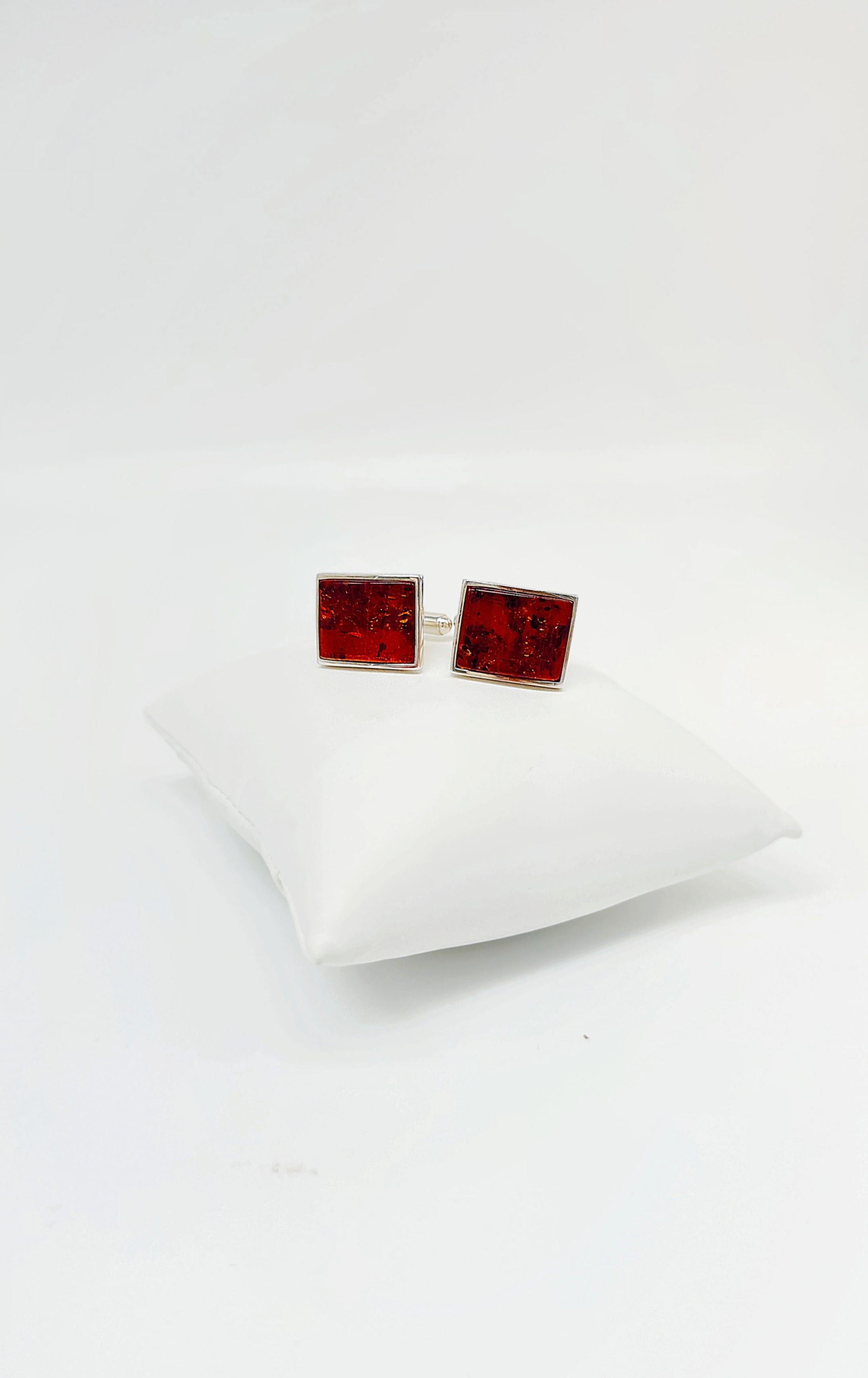 Rechteckige Manschettenknöpfe aus 925er Sterlingsilber mit rotem Bernstein