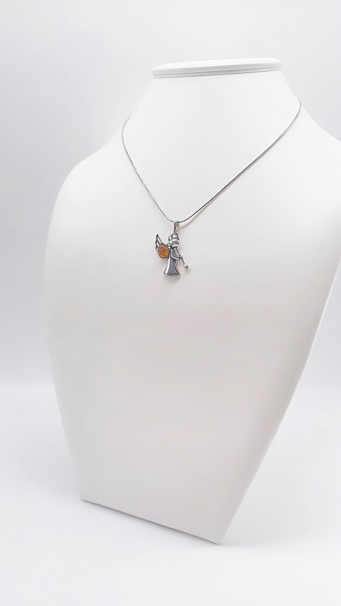 Dieser elegante Anhänger aus 925er Sterlingsilber und Bernstein zeigt einen Engel mit einer Trompete, der für Harmonie und Schutz steht. Die warmen, goldenen Töne des Bernsteins fügen sich perfekt in das edle Design des Silbers ein und machen diesen Anhänger zu einem besonderen Schmuckstück. Ideal als Geschenk für einen geliebten Menschen oder als Symbol des eigenen Glaubens und Schutzes.