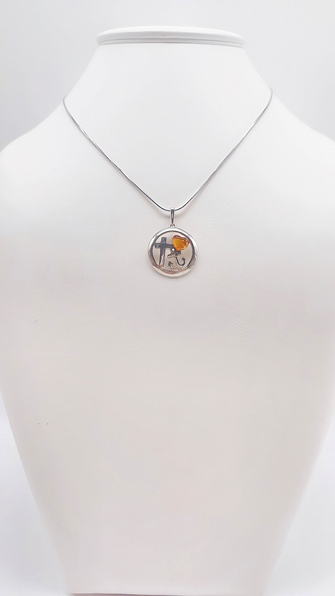 Dieser bedeutungsvolle Anhänger aus 925er Sterlingsilber und Bernstein vereint die Symbole Kreuz, Anker und Herz. Diese Symbole stehen für Glaube, Hoffnung und Liebe und machen den Anhänger zu einem ausdrucksstarken Schmuckstück. Der warme Bernstein setzt dabei einen schönen Kontrast zum glänzenden Silber und verleiht dem Anhänger eine besondere Tiefe. Ideal als Geschenk für einen geliebten Menschen oder als persönliches Glaubenssymbol.