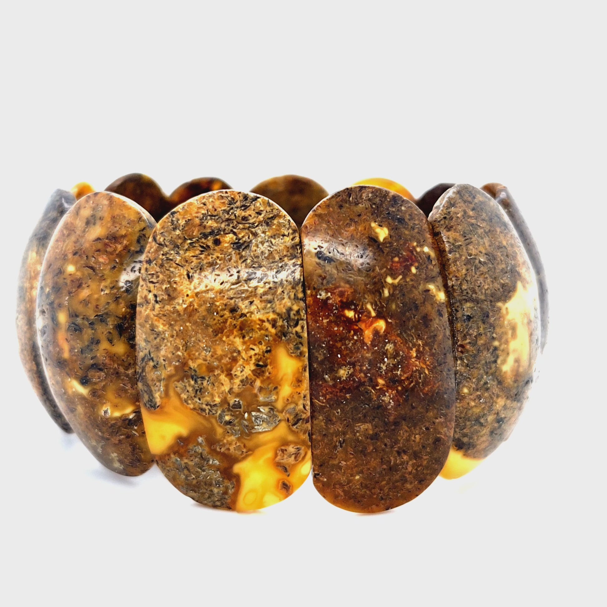 Die großen, individuell gemaserten Bernsteinelemente machen jedes Armband zu einem unverwechselbaren Einzelstück.