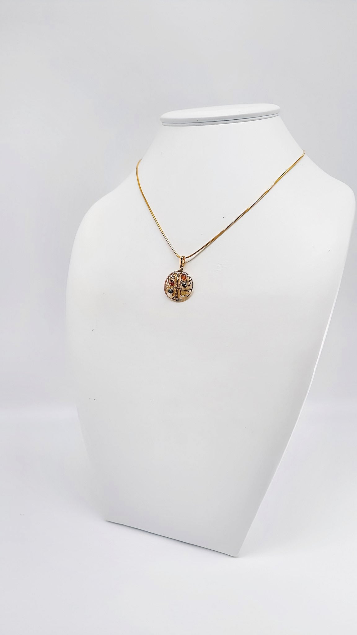 Vergoldeter Anhänger mit Bernstein – Symbol des Lebens