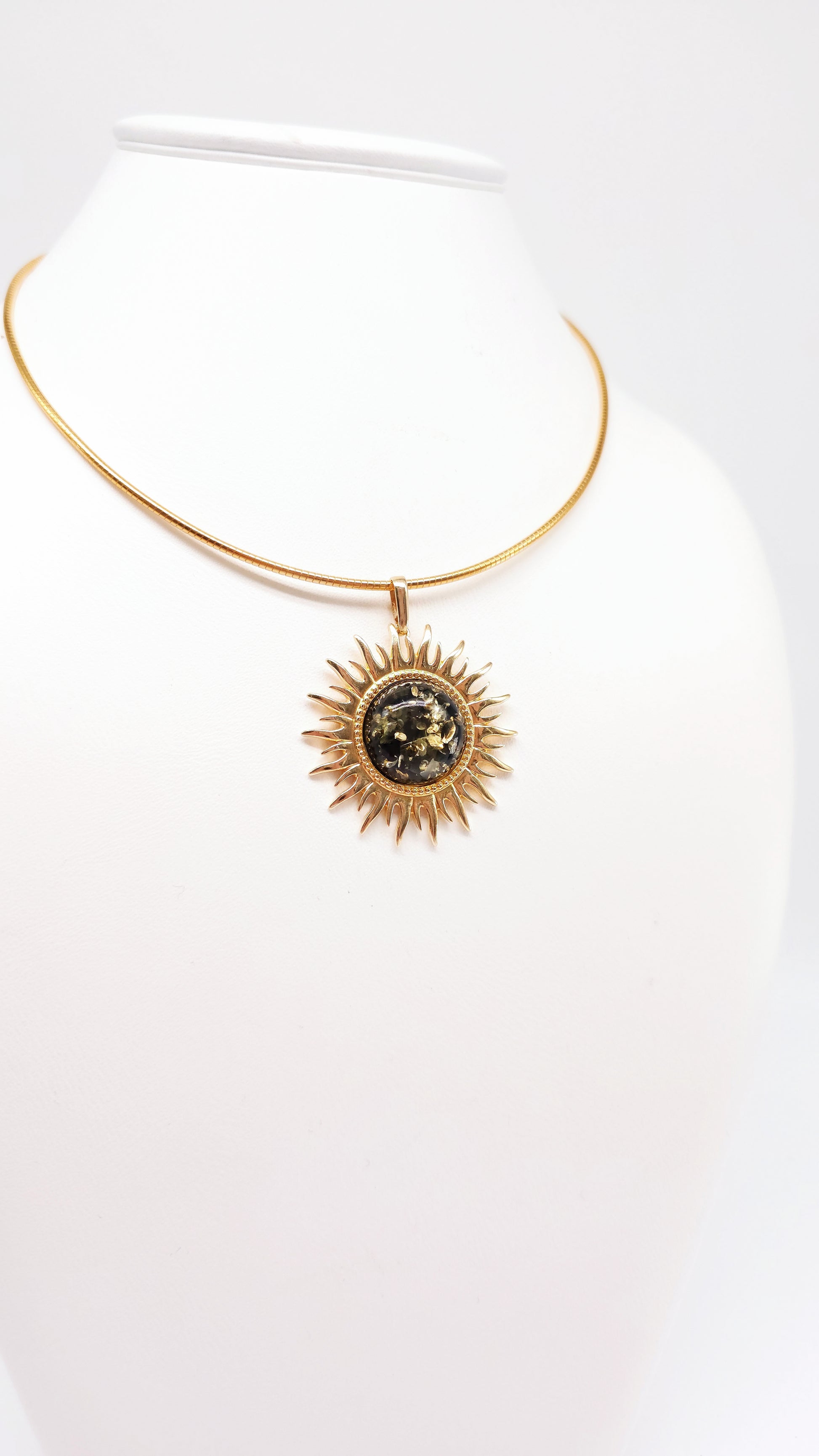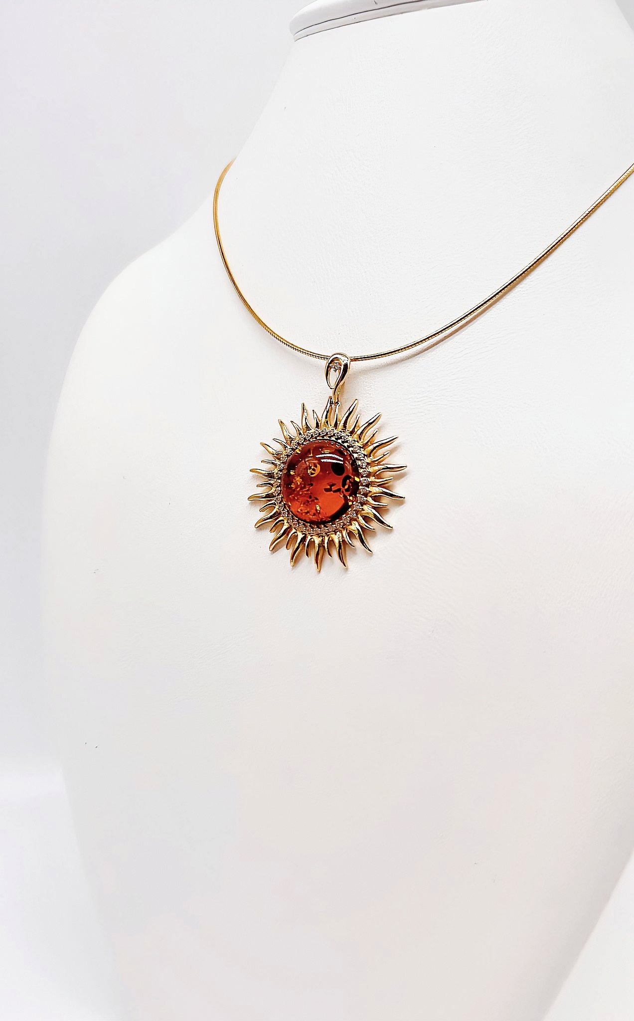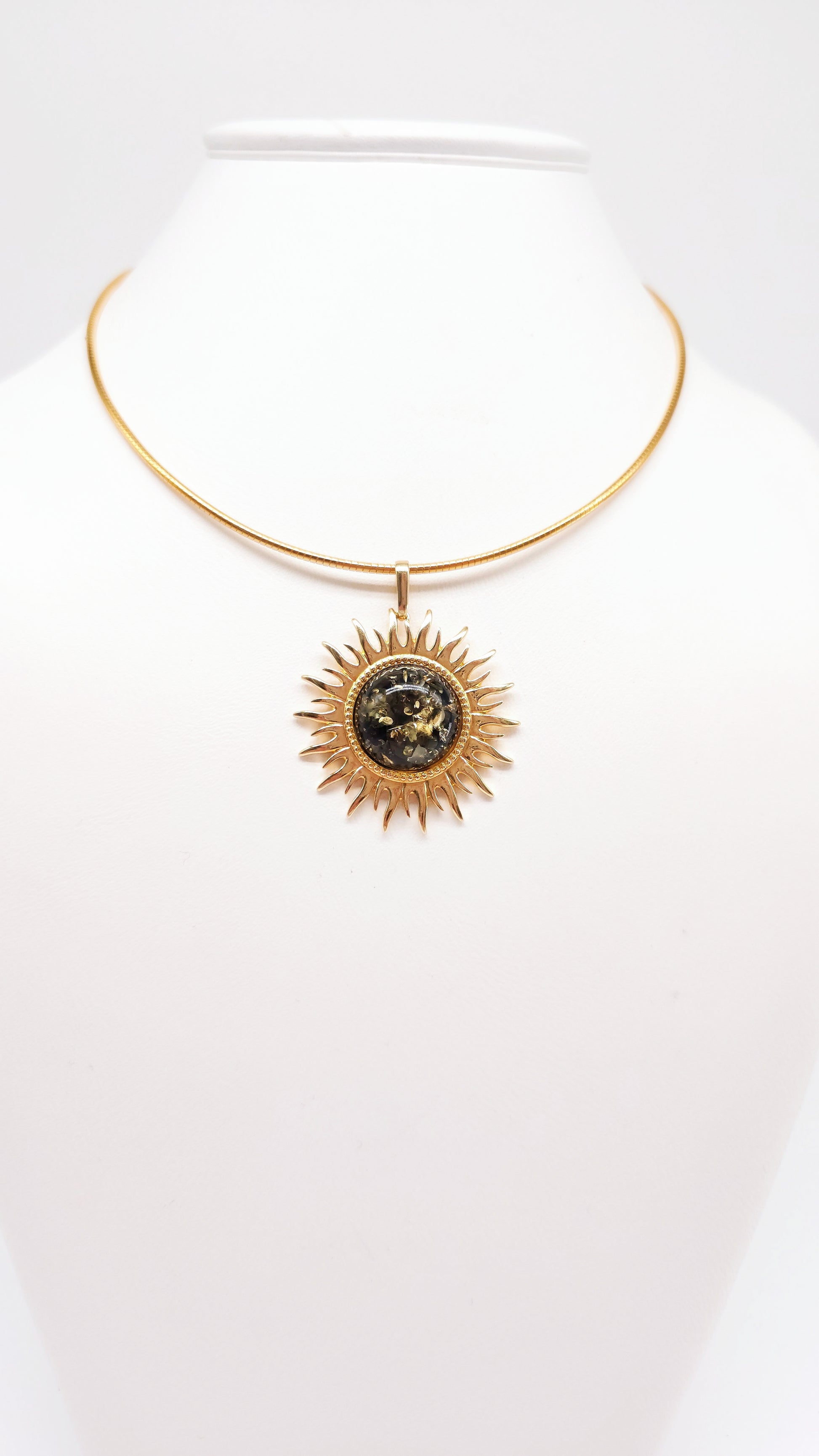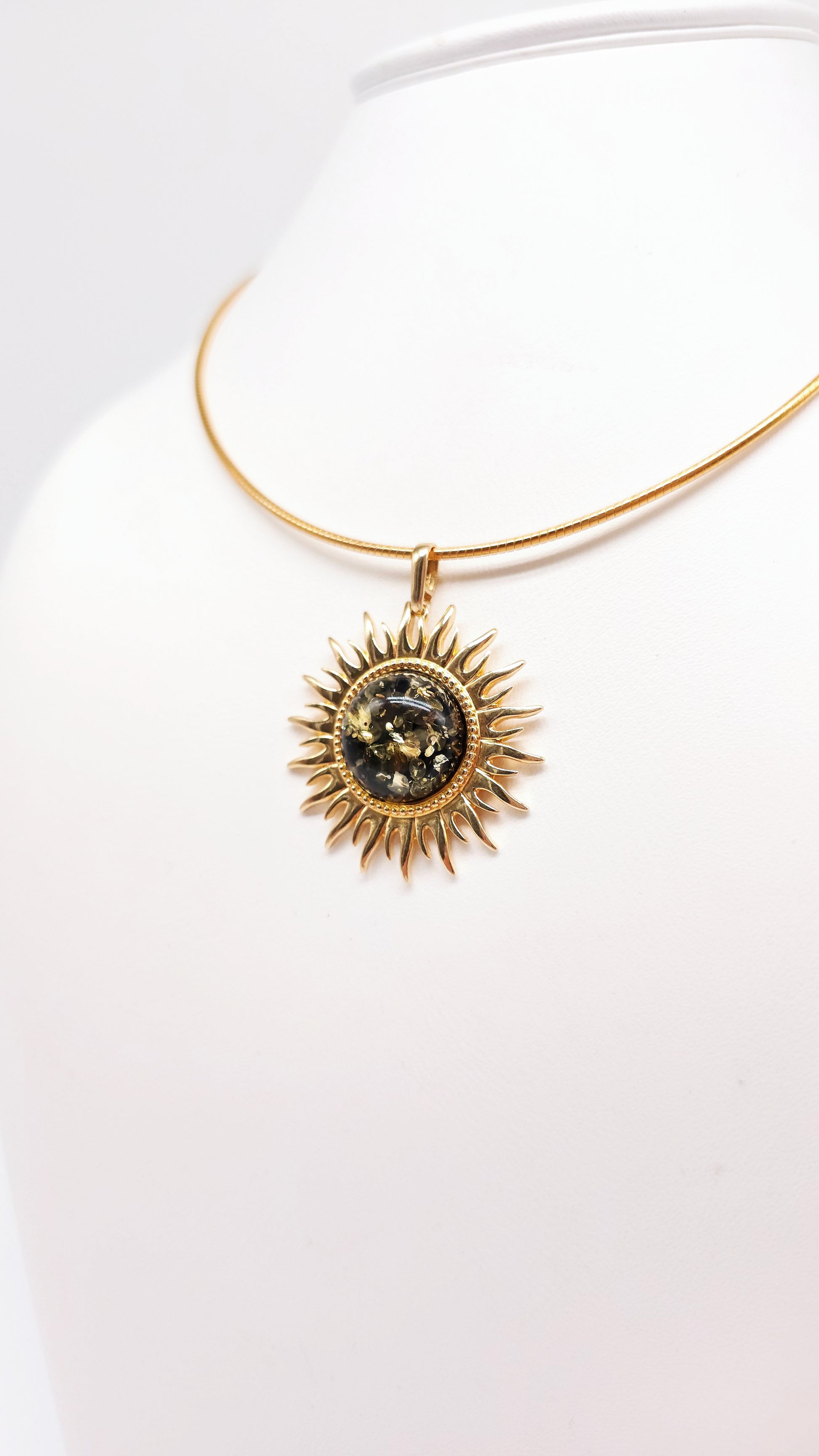 Vergoldeter Sonnen-Anhänger mit Bernstein
