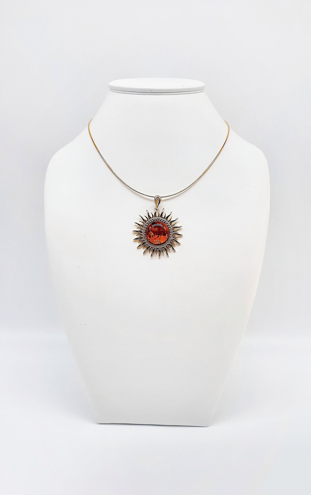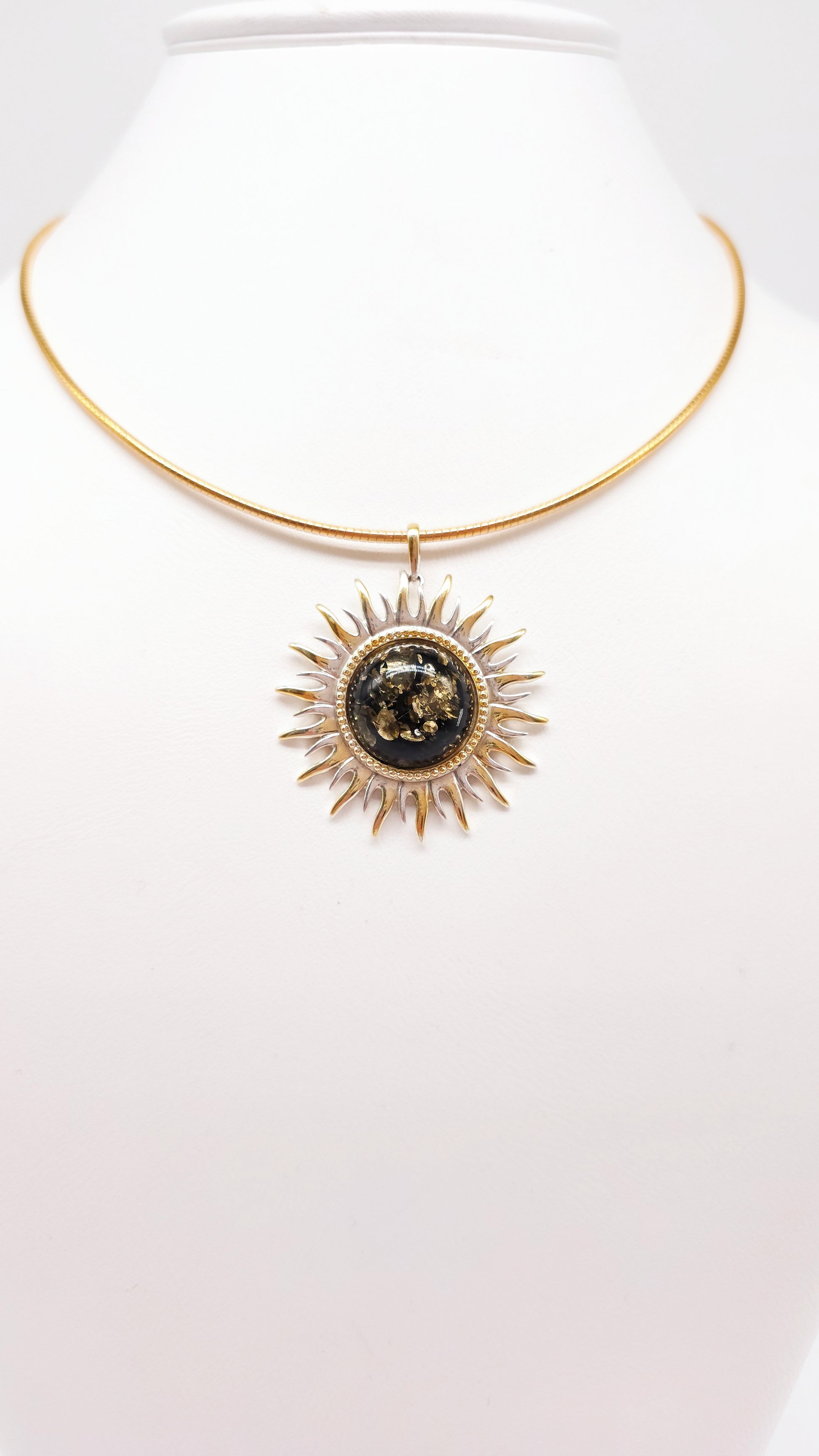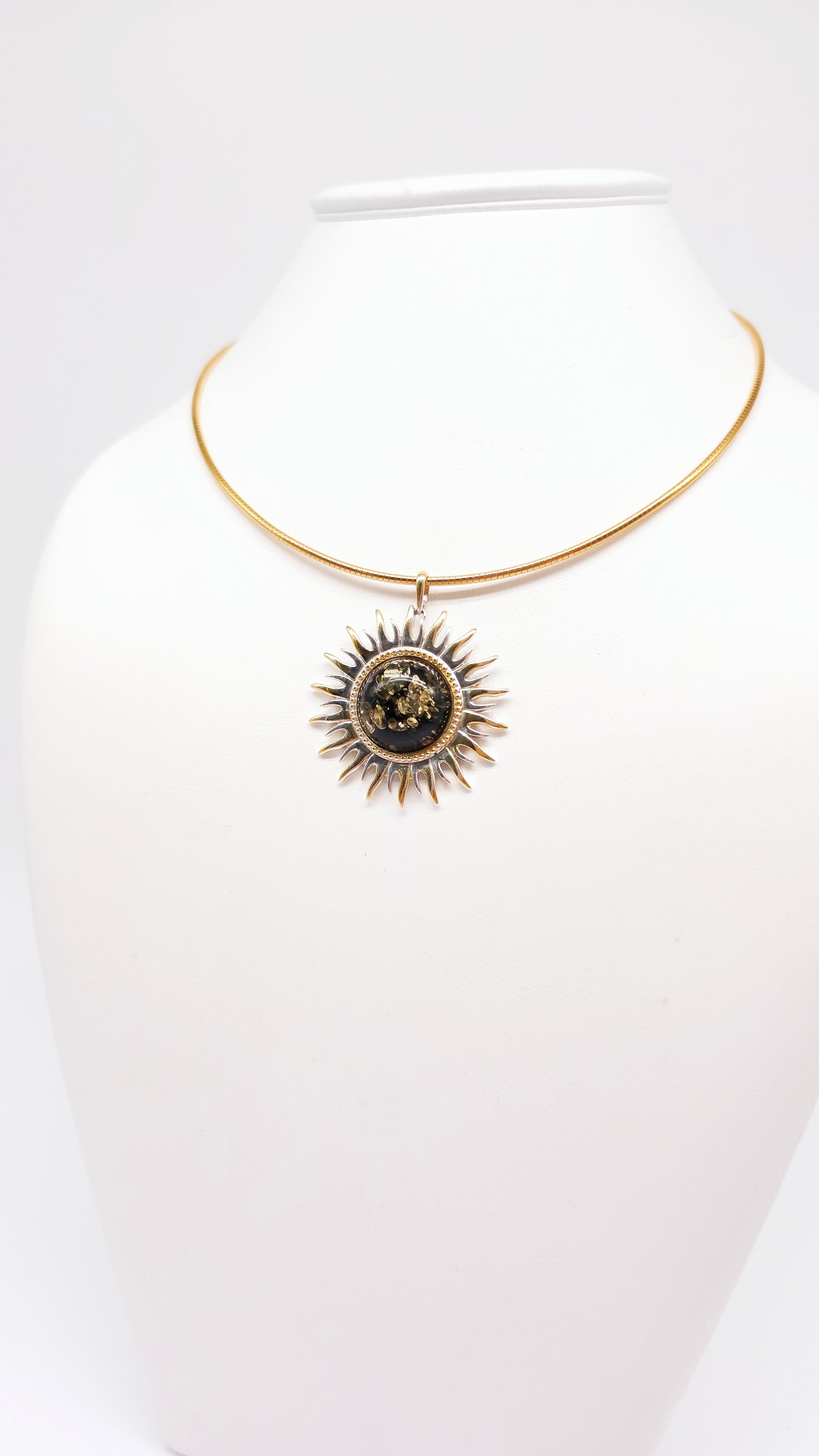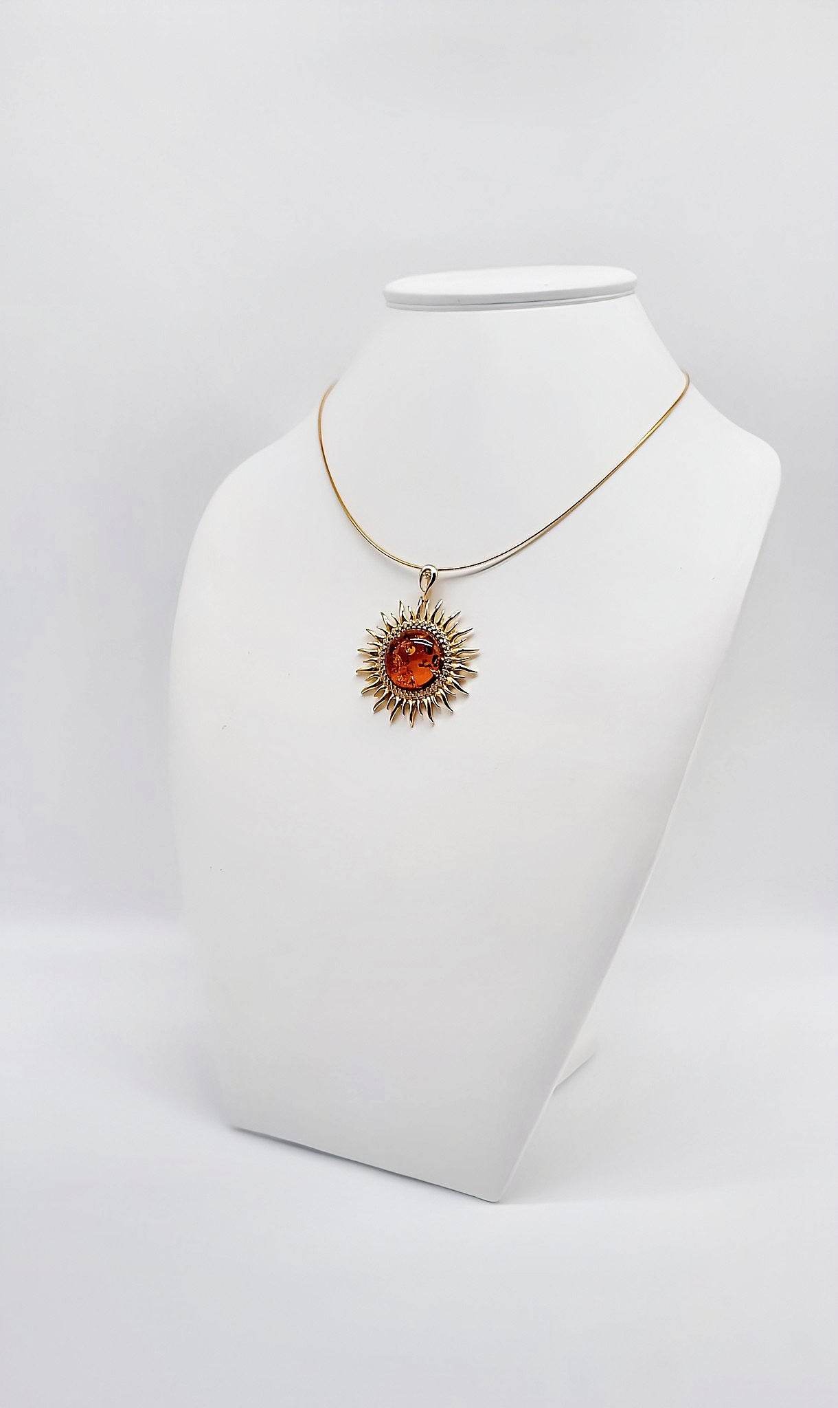 Vergoldeter Sonnen-Anhänger mit Bernstein
