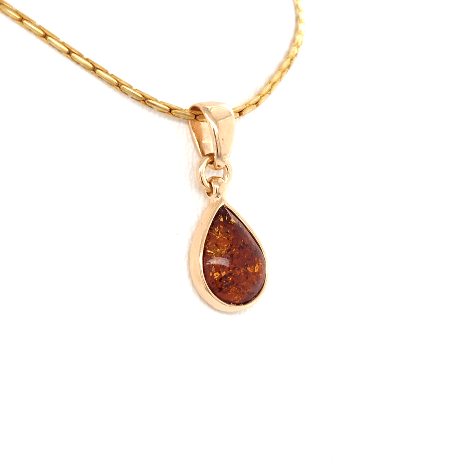 Die feine Tropfenform unterstreicht die natürliche Schönheit des Bernsteins und macht den Anhänger zu einem dezenten, femininen Highlight für jeden Tag.