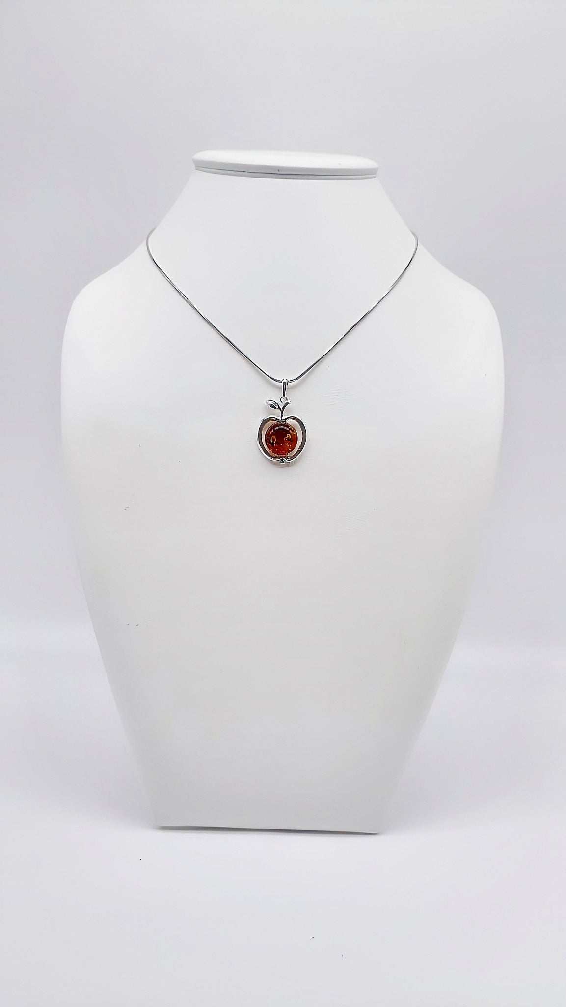 Zeitloser Apfelform-Anhänger mit Bernstein und Silber